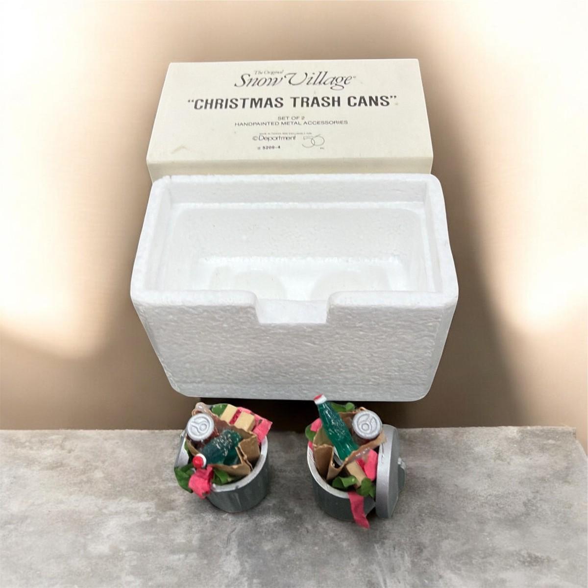 Dept 56 Snow Village Set of 2 Christmas Metal Trash Cans #5209-4