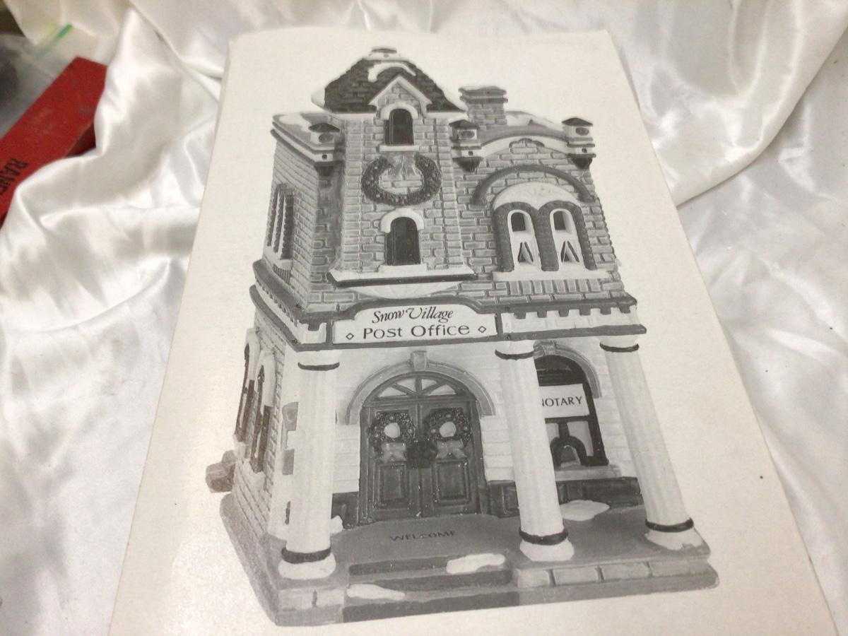 You get this great Dept 56 Snow Village Village Post Office. You get the light and packaging with cardboard slip. This is used so the packaging may be have some damage.