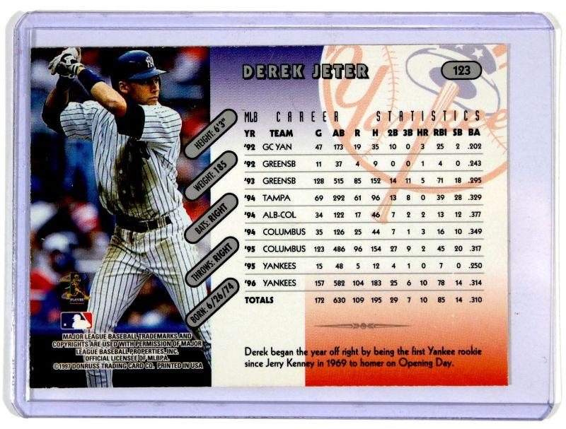 DEREK JETER 1997 DONRUSS TEAM SET CARD # 123 NY YANKEES BASEBALL CARD