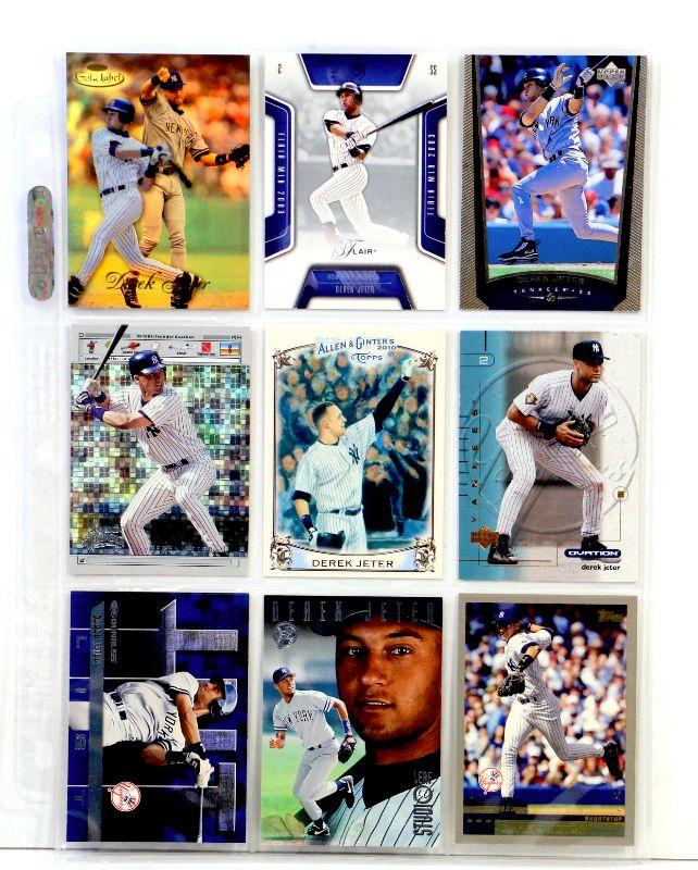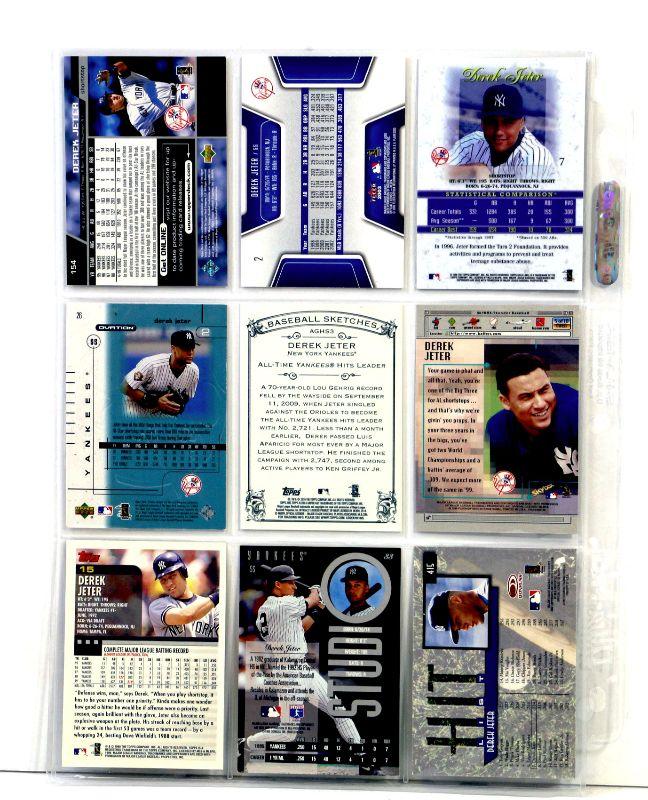 Set of 9 baseball cards featuring Derek Jeter - All cards come in Excellent Mint condition in 9-card binder sheet.