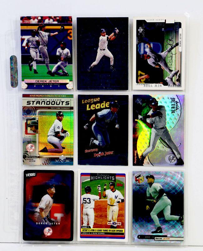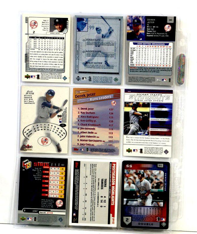 Set of 9 baseball cards featuring Derek Jeter - All cards come in Excellent Mint condition in 9-card binder sheet.