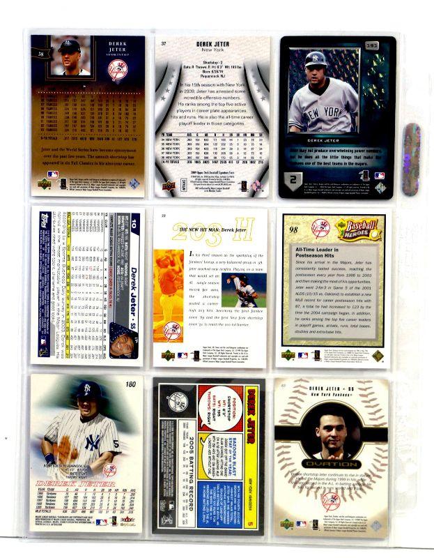Set of 9 baseball cards featuring Derek Jeter - All cards come in Excellent Mint condition in 9-card binder sheet.