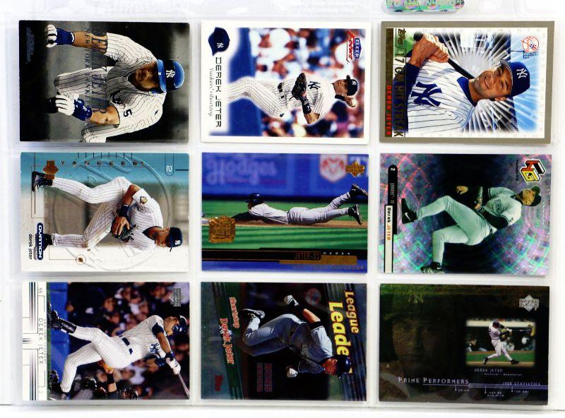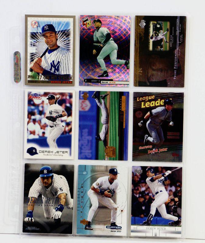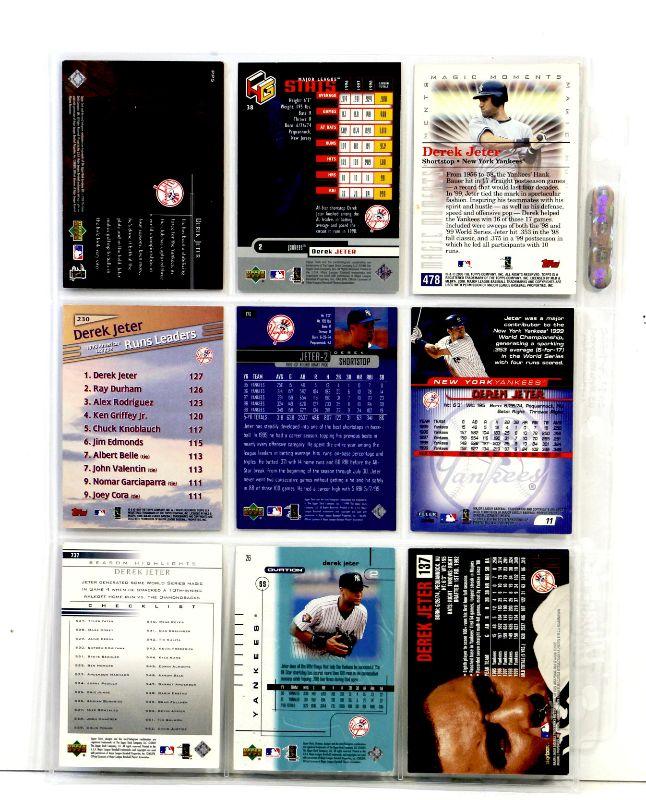 Set of 9 baseball cards featuring Derek Jeter - All cards come in Excellent Mint condition in 9-card binder sheet.