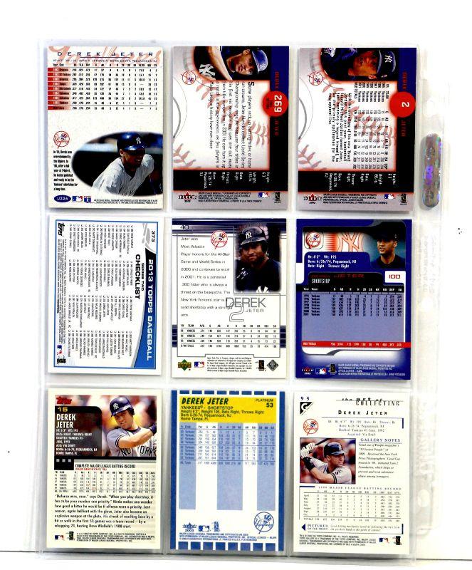 Set of 9 baseball cards featuring Derek Jeter - All cards come in Excellent Mint condition in 9-card binder sheet.
