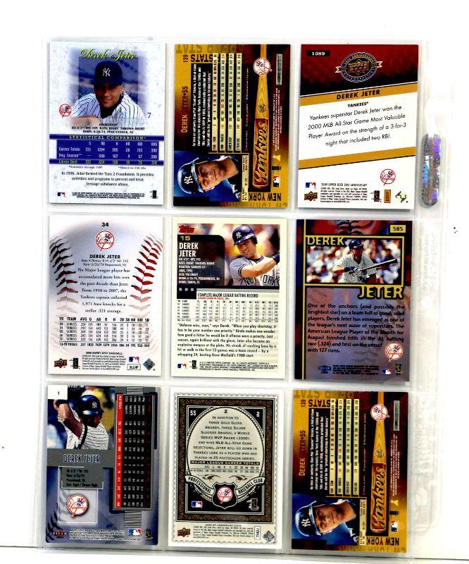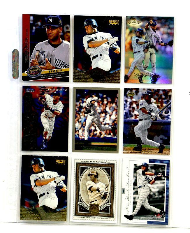 Set of 9 baseball cards featuring Derek Jeter - All cards come in Excellent Mint condition in 9-card binder sheet.