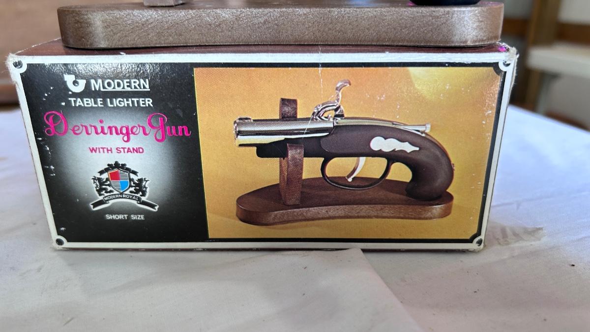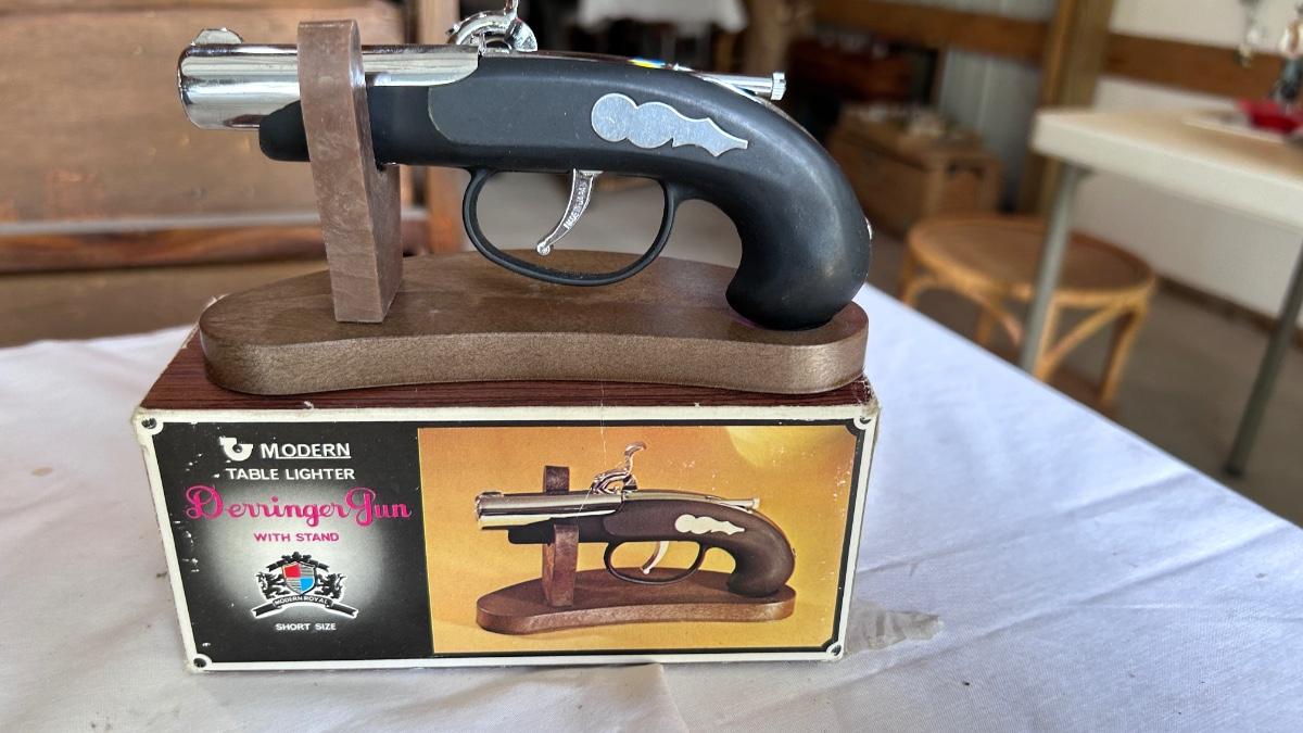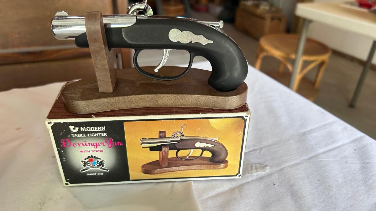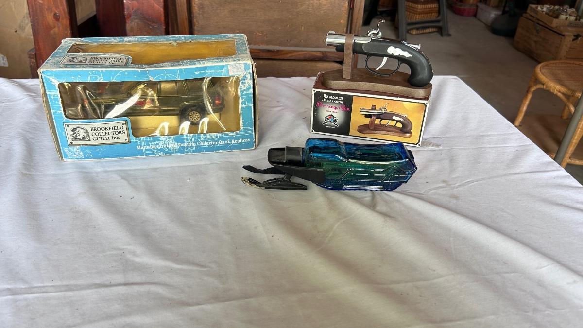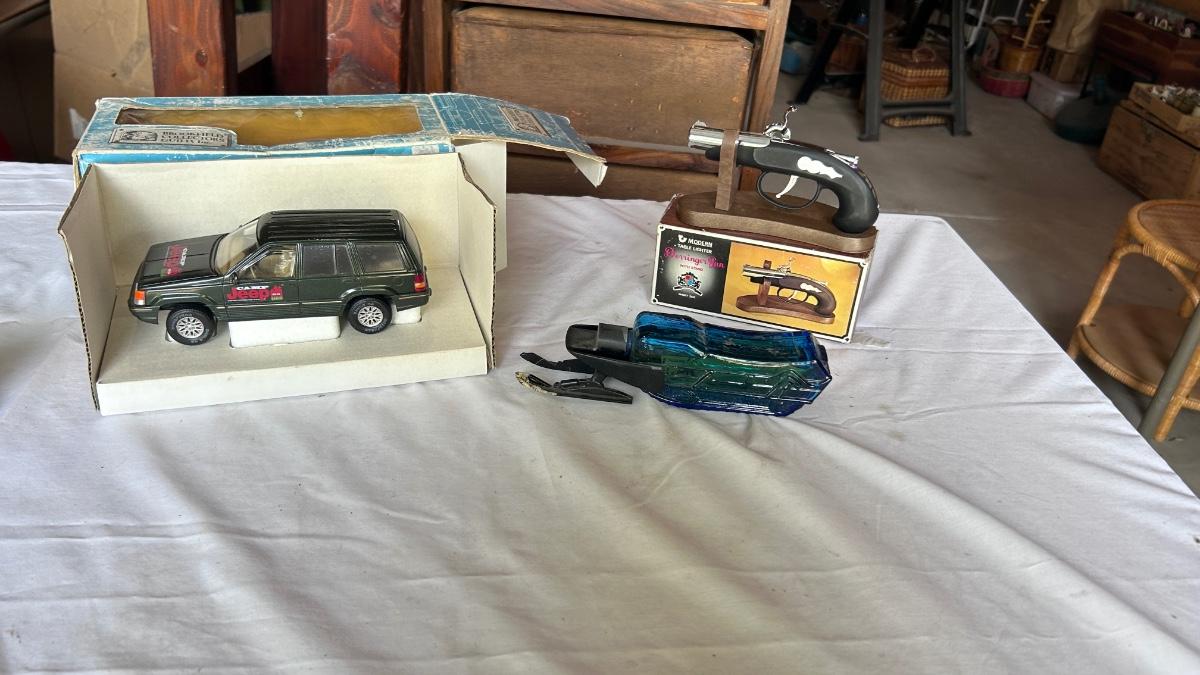 DERRINGER GUN TABLE LIGHTER, DIE-CAST JEEP GRAND CHEROKEE AND SNOWMOBILE AVON BOTTLE