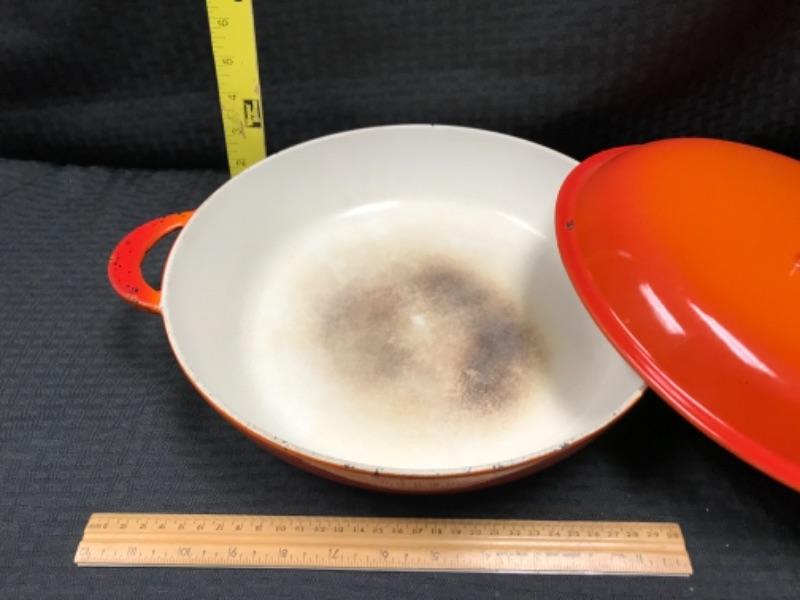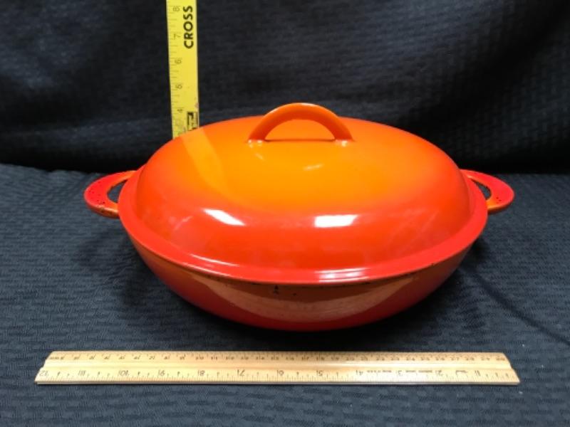 Descoware Enameled 12” Skillet Double Handle Orange/Red Cast Iron Cookware