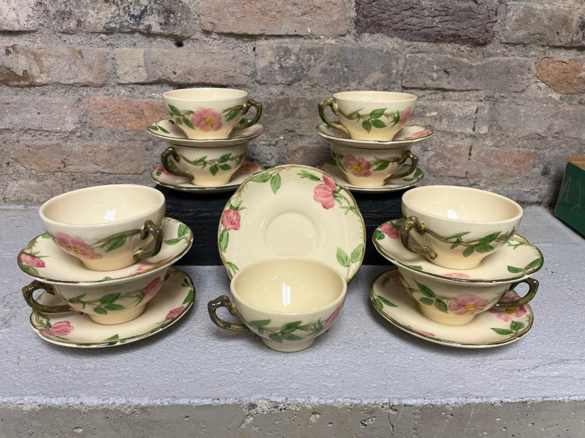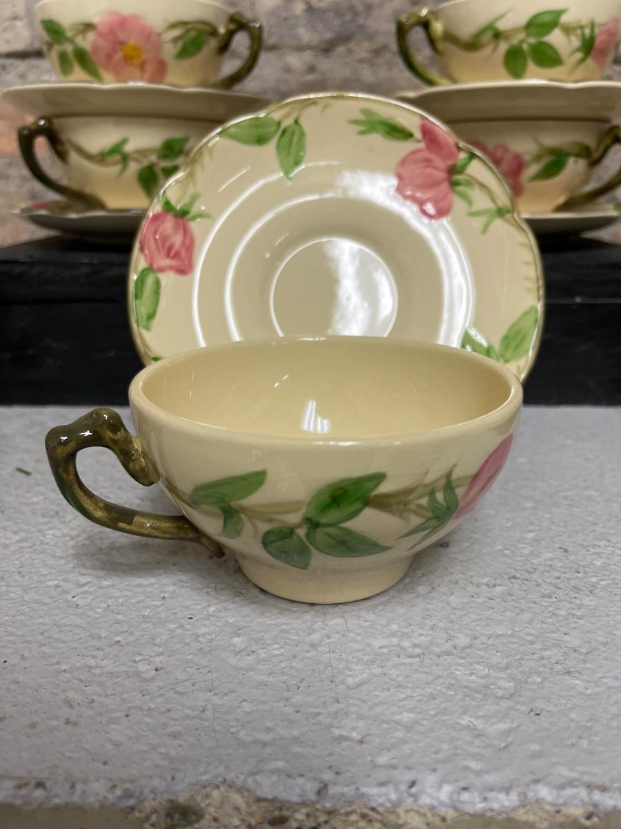 Nine Franciscan Desert Rose cup and saucer sets in perfect condition!