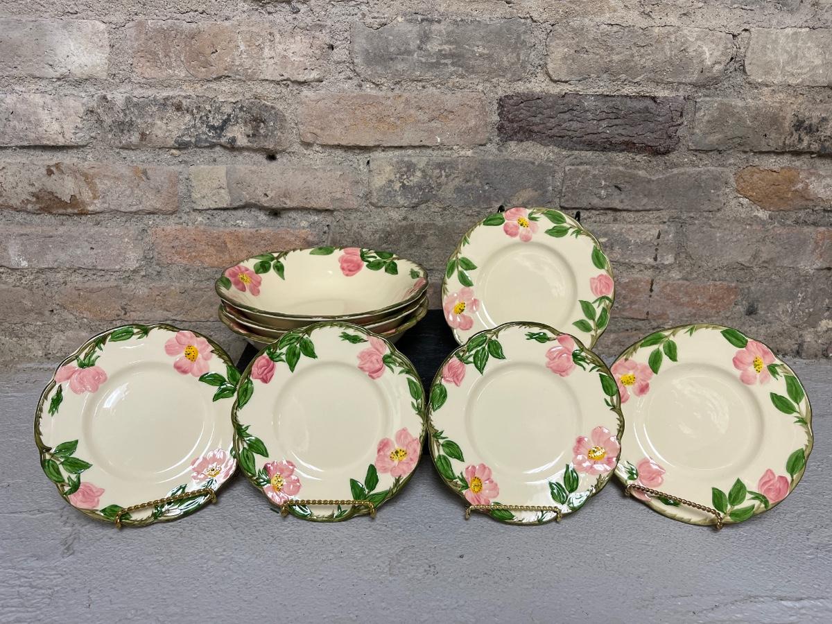 Set of five Franciscan 6.25” dessert plates and three 8” vegetable bowls