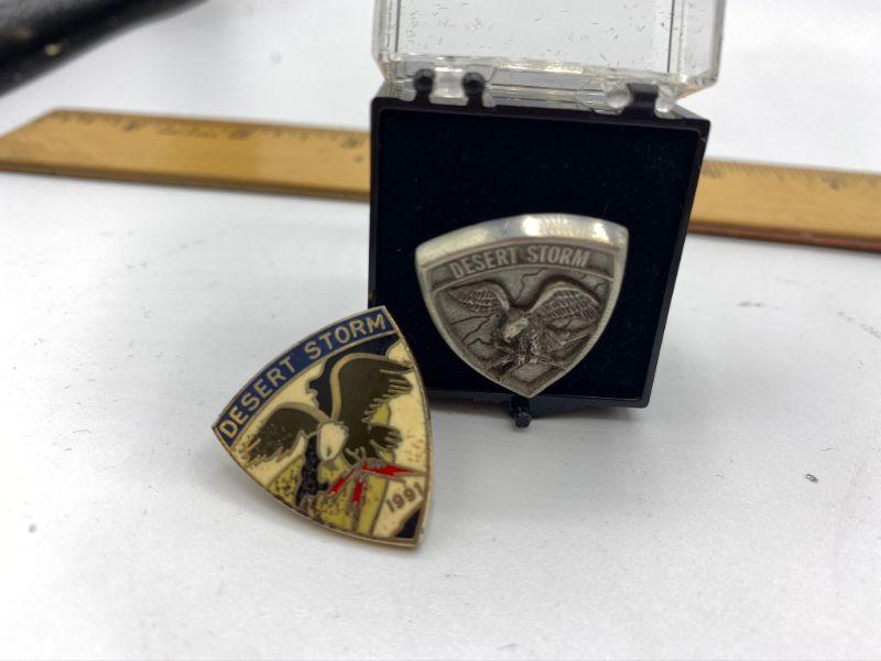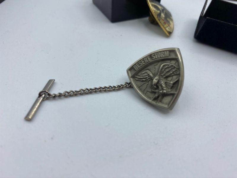 Desert Storm collectors pins. Enamel pin and a pewter tie tack. Matching images.