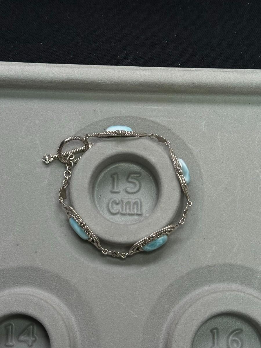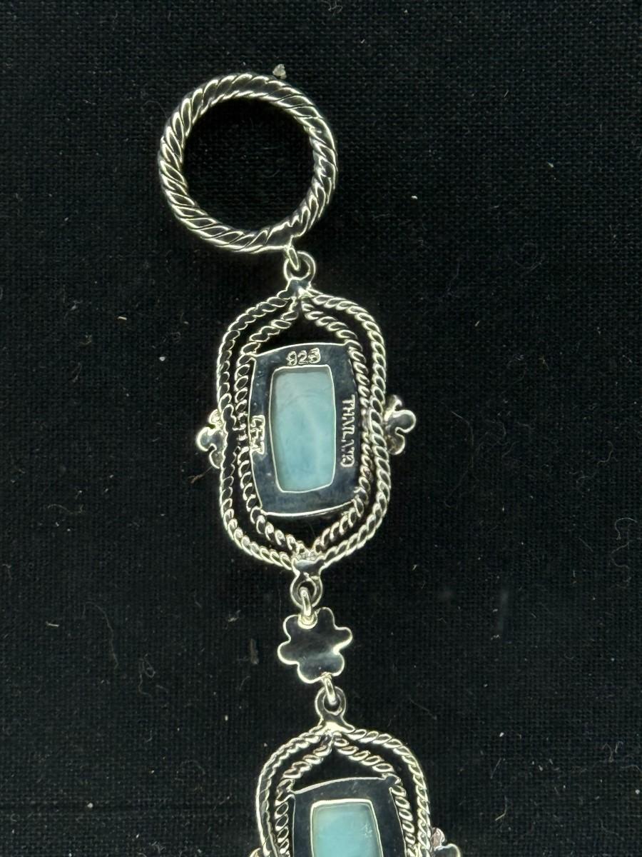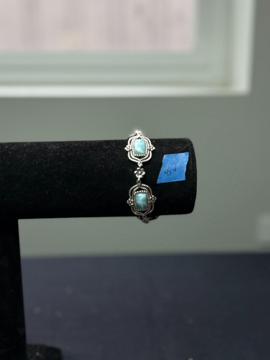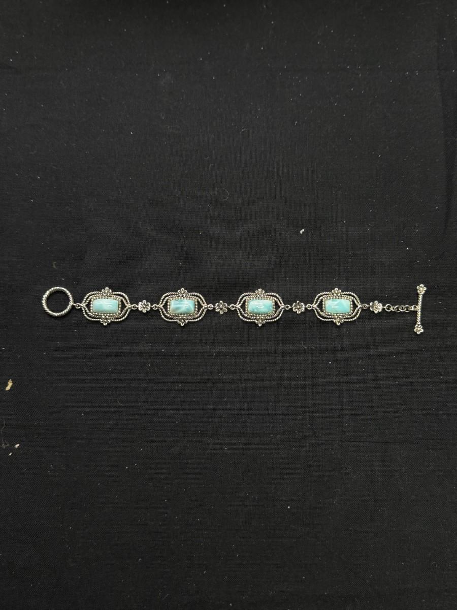 Designer 925 Sterling Silver Larimar Balinese Floral Panel Toggle Bracelet