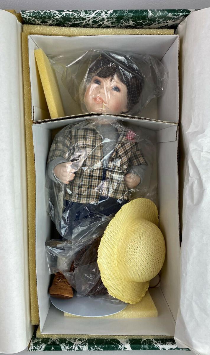 New condition on this limited edition porcelain artist doll "TOMMY" by artist Linda Steele for the Designer Guild Collection in 1997...16 inch...with straw hat and fishing rod...Limited edition #484/2000“🦆