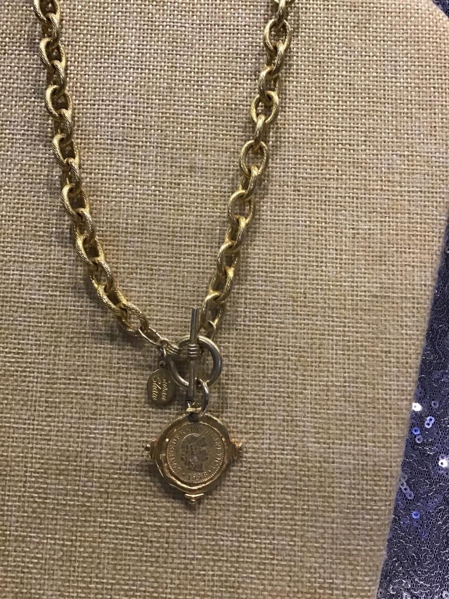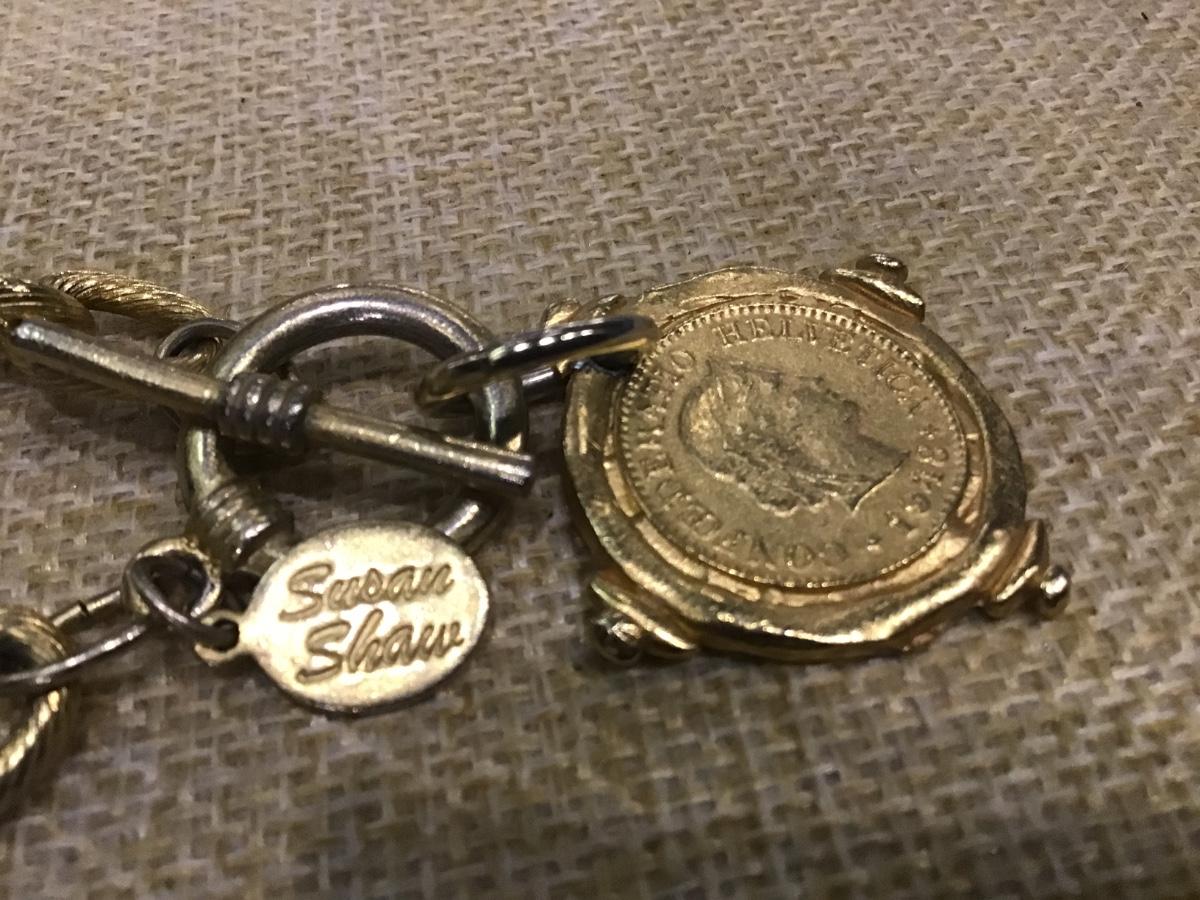 Designer Susan Shaw Coin Pendant Necklace on Toggle Chain
