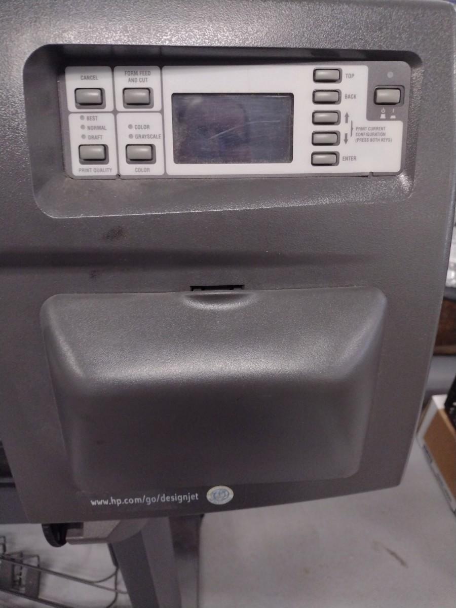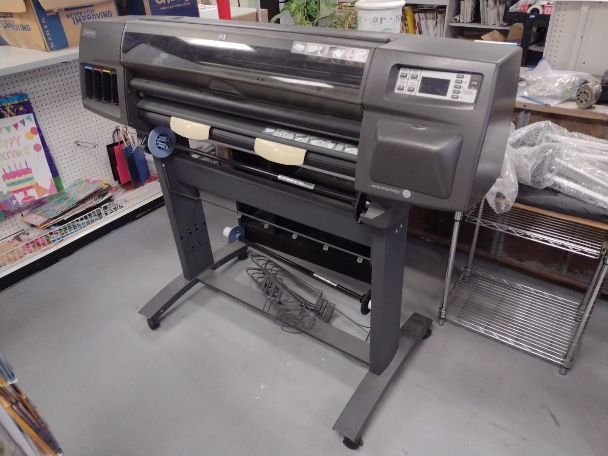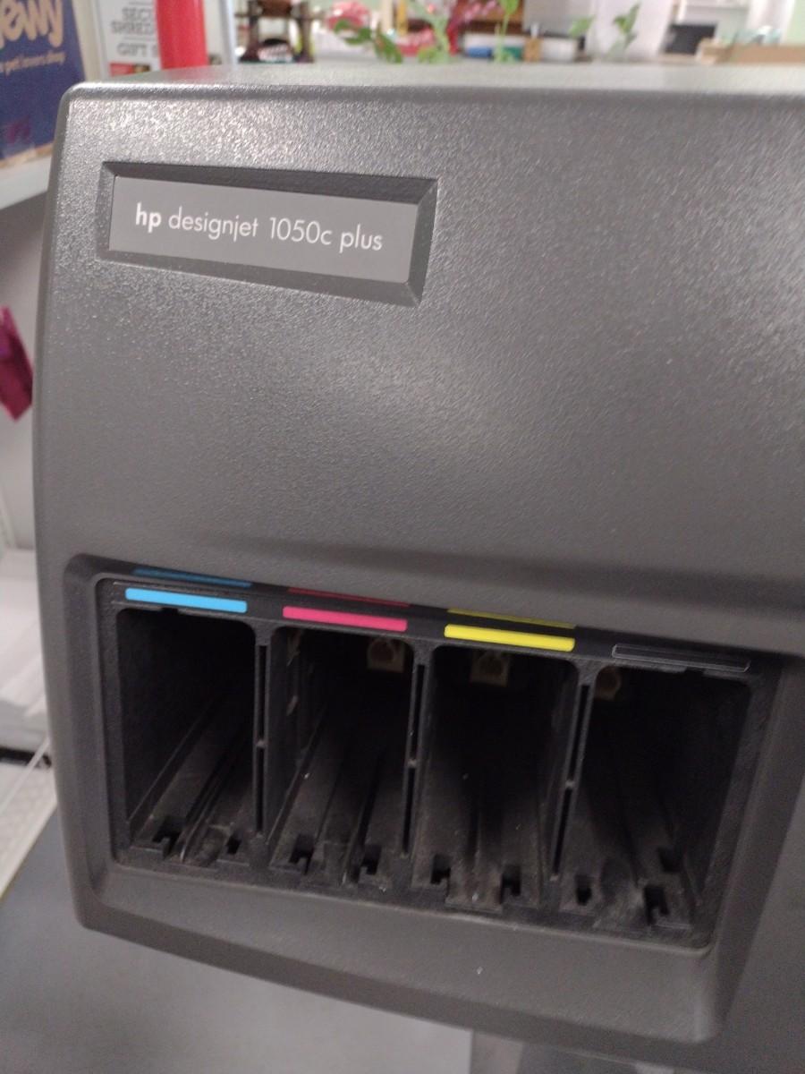 HP Designjet 1050C Plus 32" Copier was reported to be in working condition. No ink cartridges.