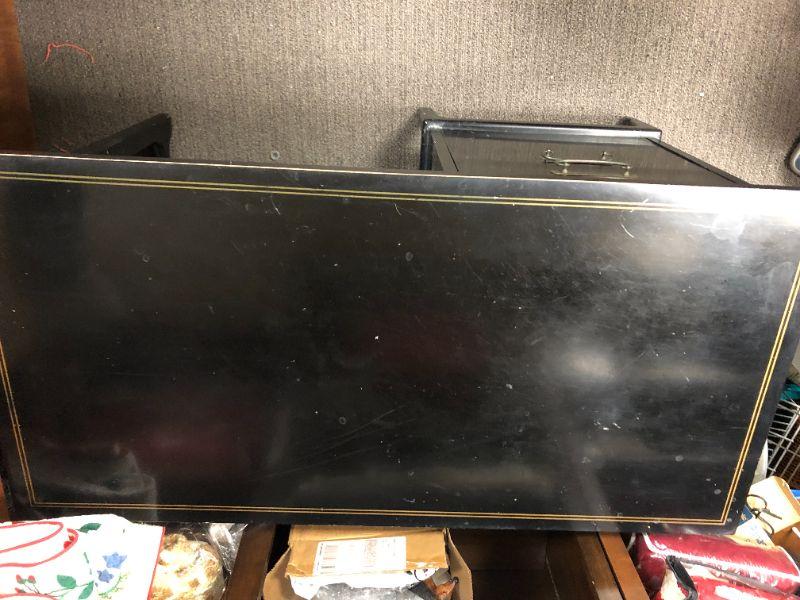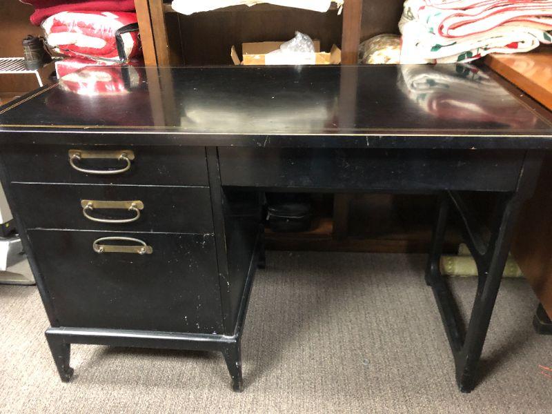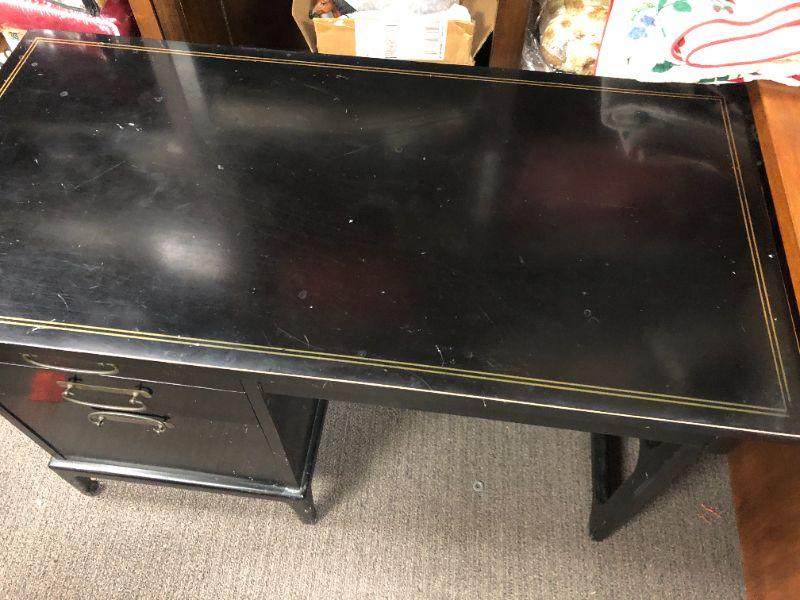 Vintage black American of Martinsville writing desk. 4 drawers. Measures 29"hx47"wx23"d. Has some minor signs of age and use.