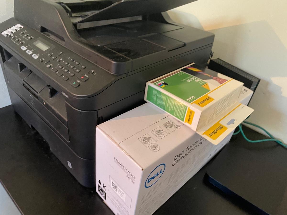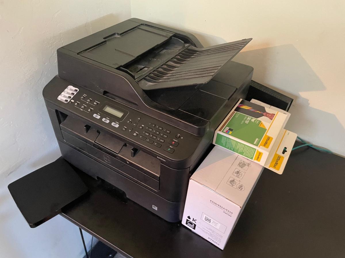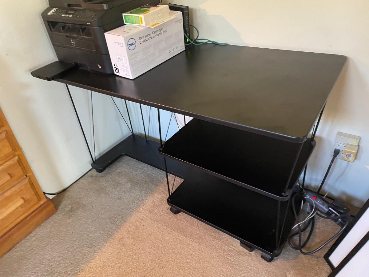 Desk itself in fair condition, printer is Dell E515dn and includes Dell toner cartridge and HP5657 ink. (47inX24inX29in)