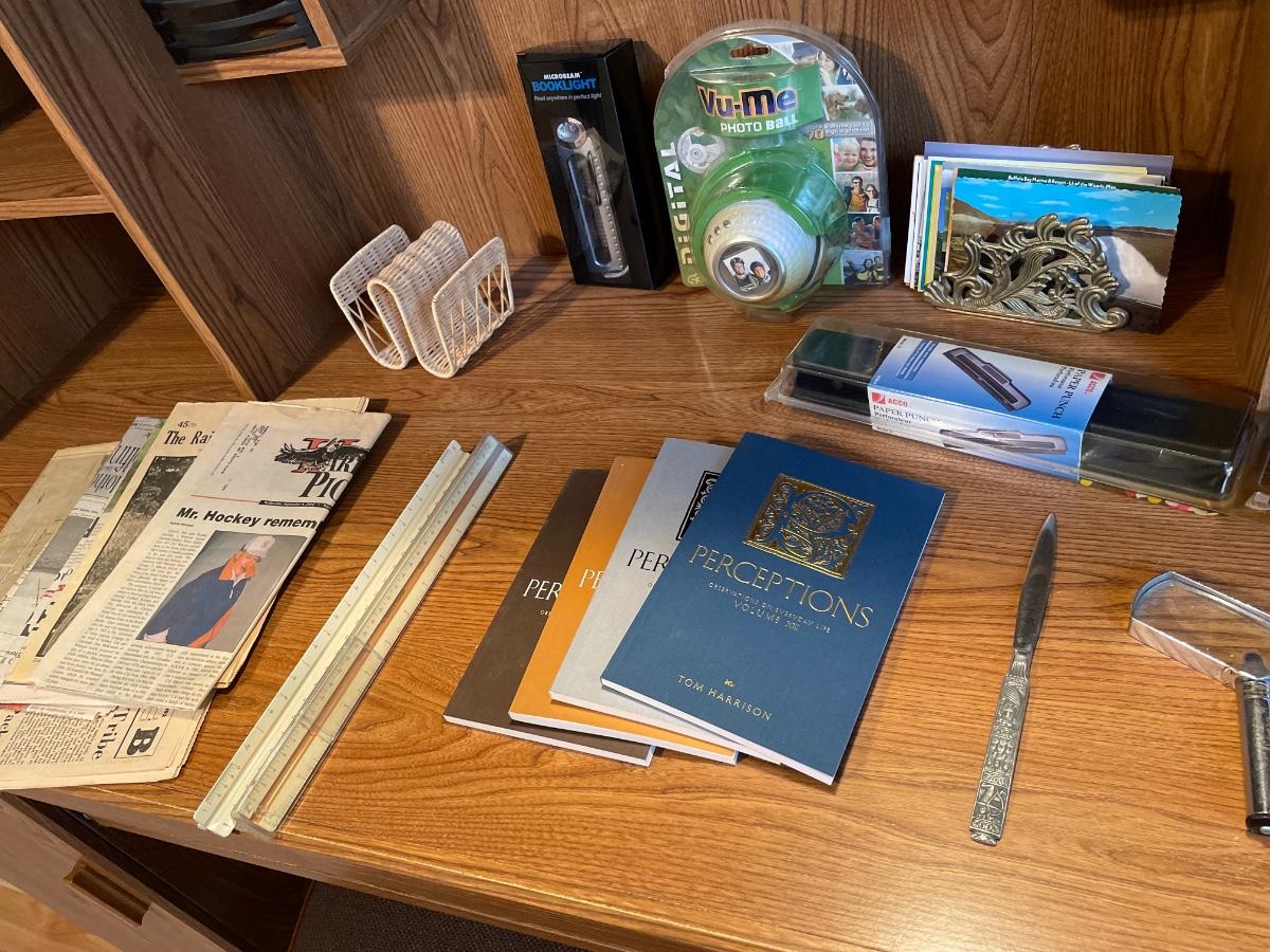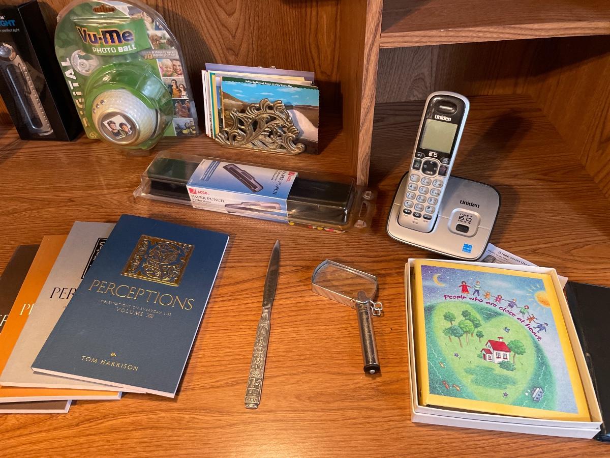 Comes with table lamp, phone, photo all, letter opener, book light, post cards