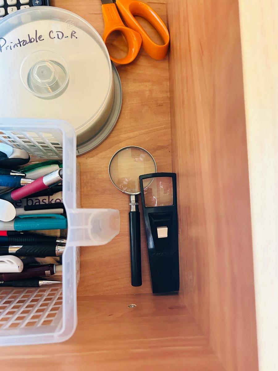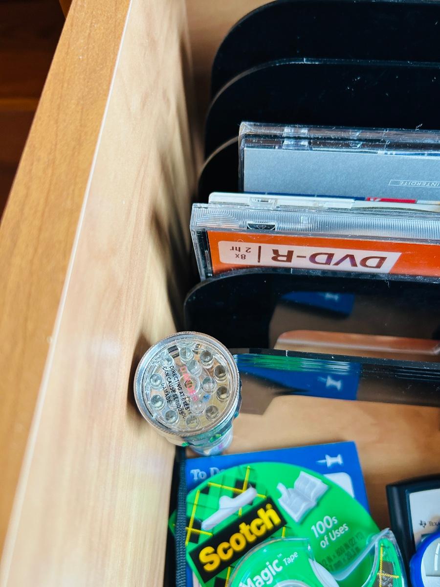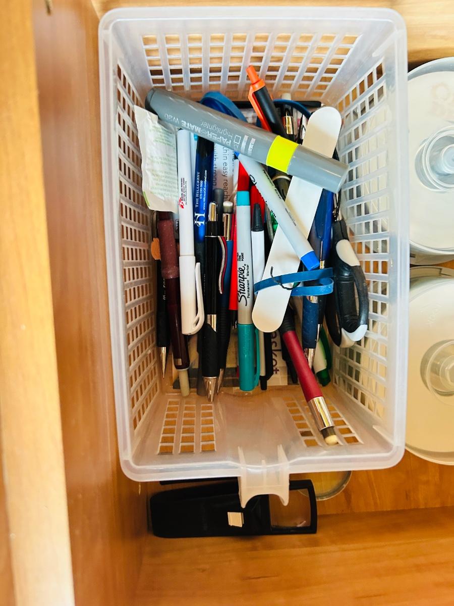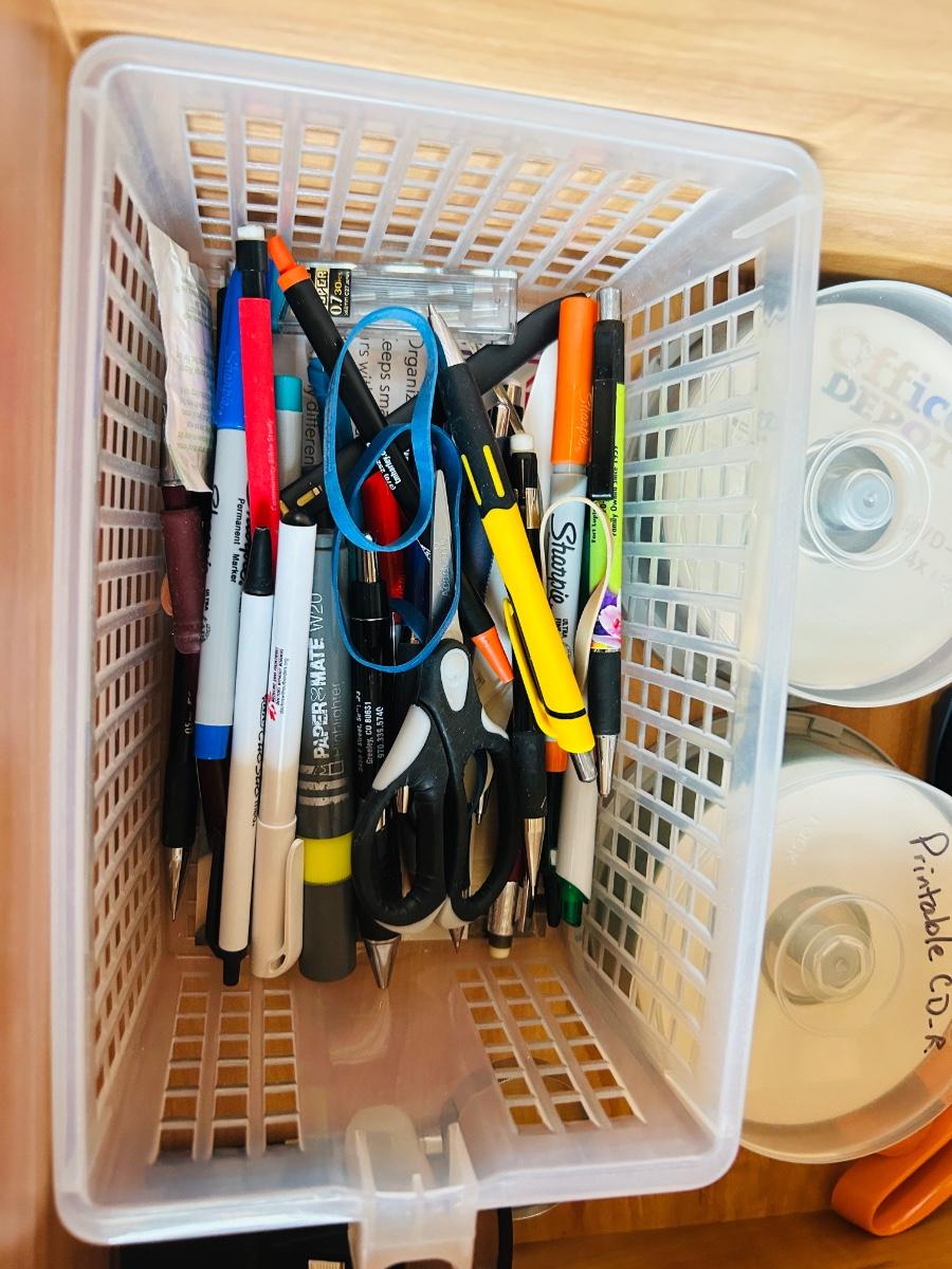 DESK DRAWER PACKED WITH DIFFERENT OFFICE SUPPLIES
