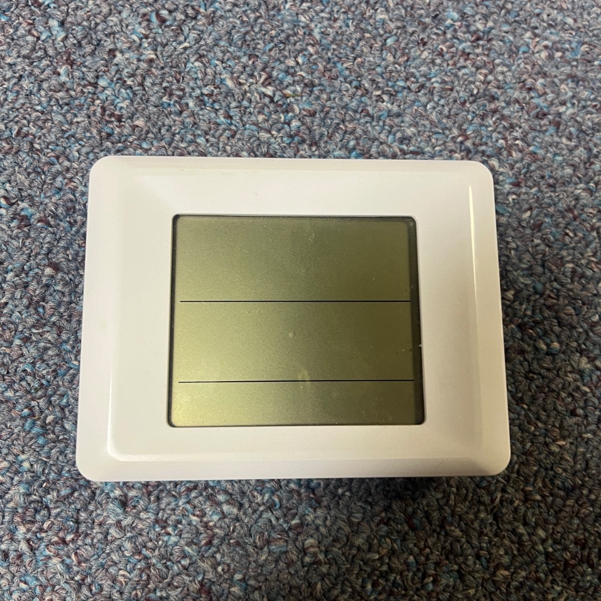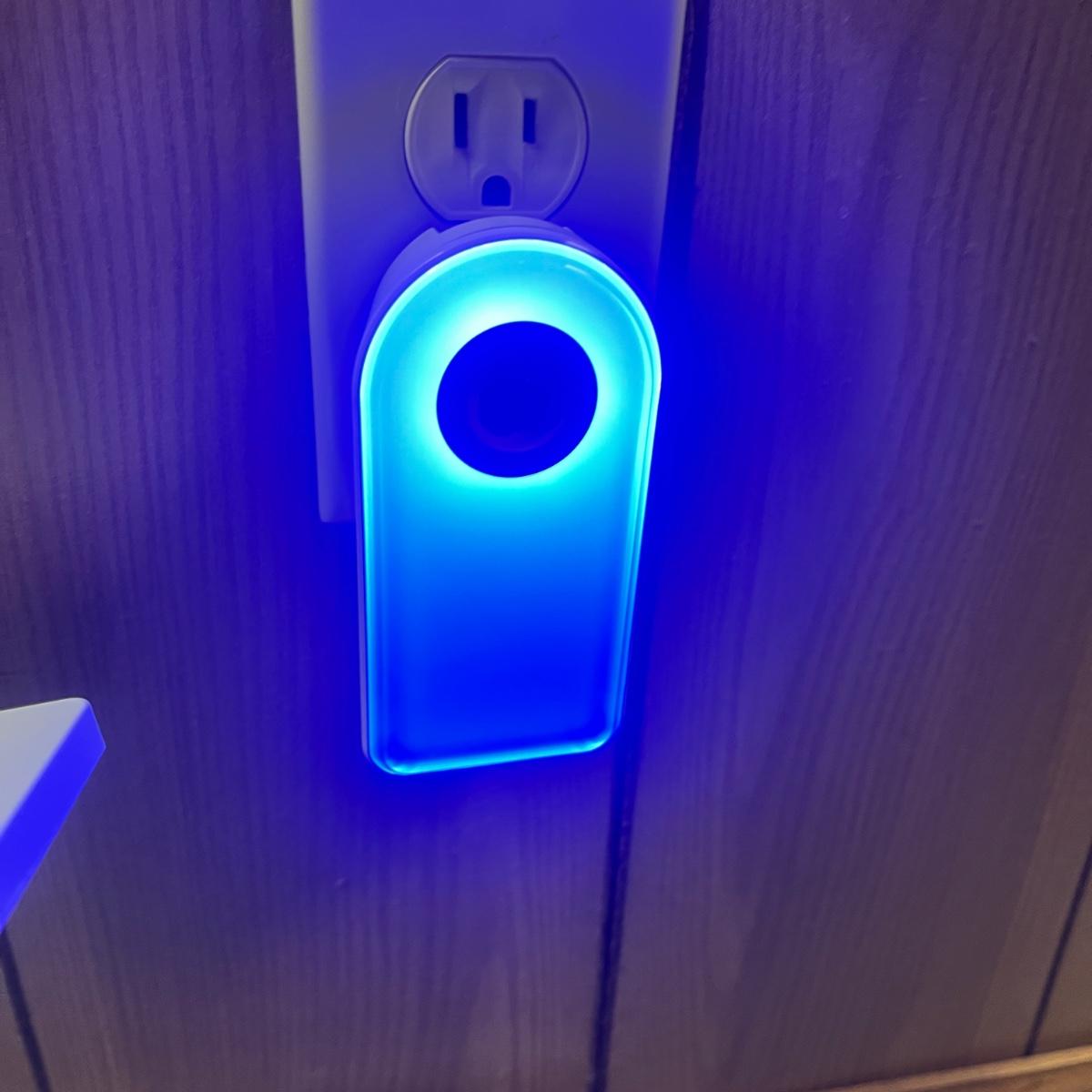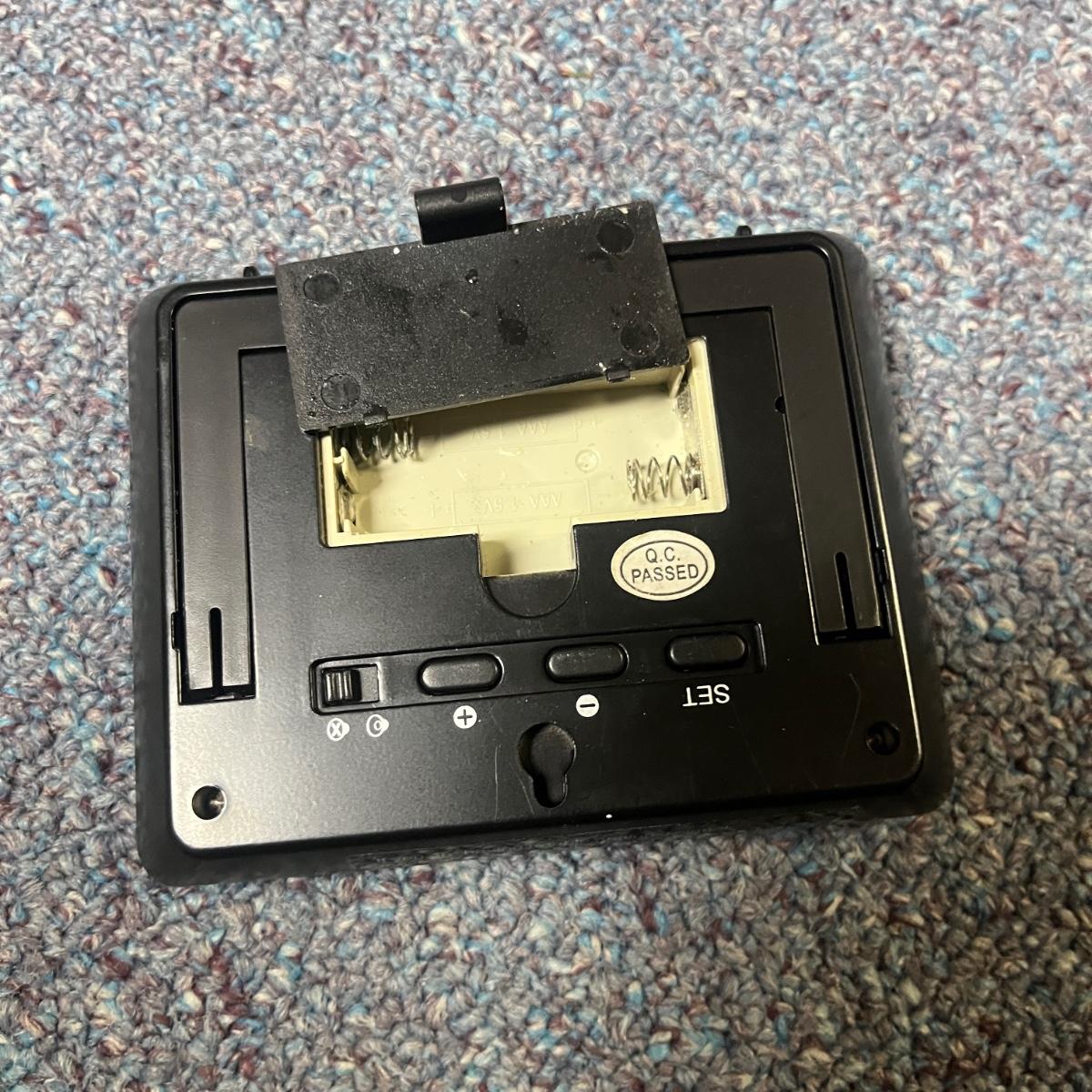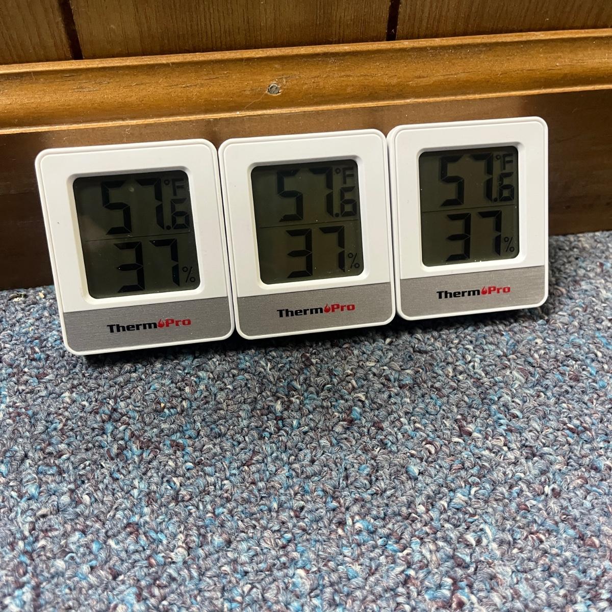 Lot includes a Maxlite gooseneck desk lamp, two emergency flashlights, three thermometers, and three motion sensors. All items powered on when plugged except for Kenmore weather gauge that has no batteries.