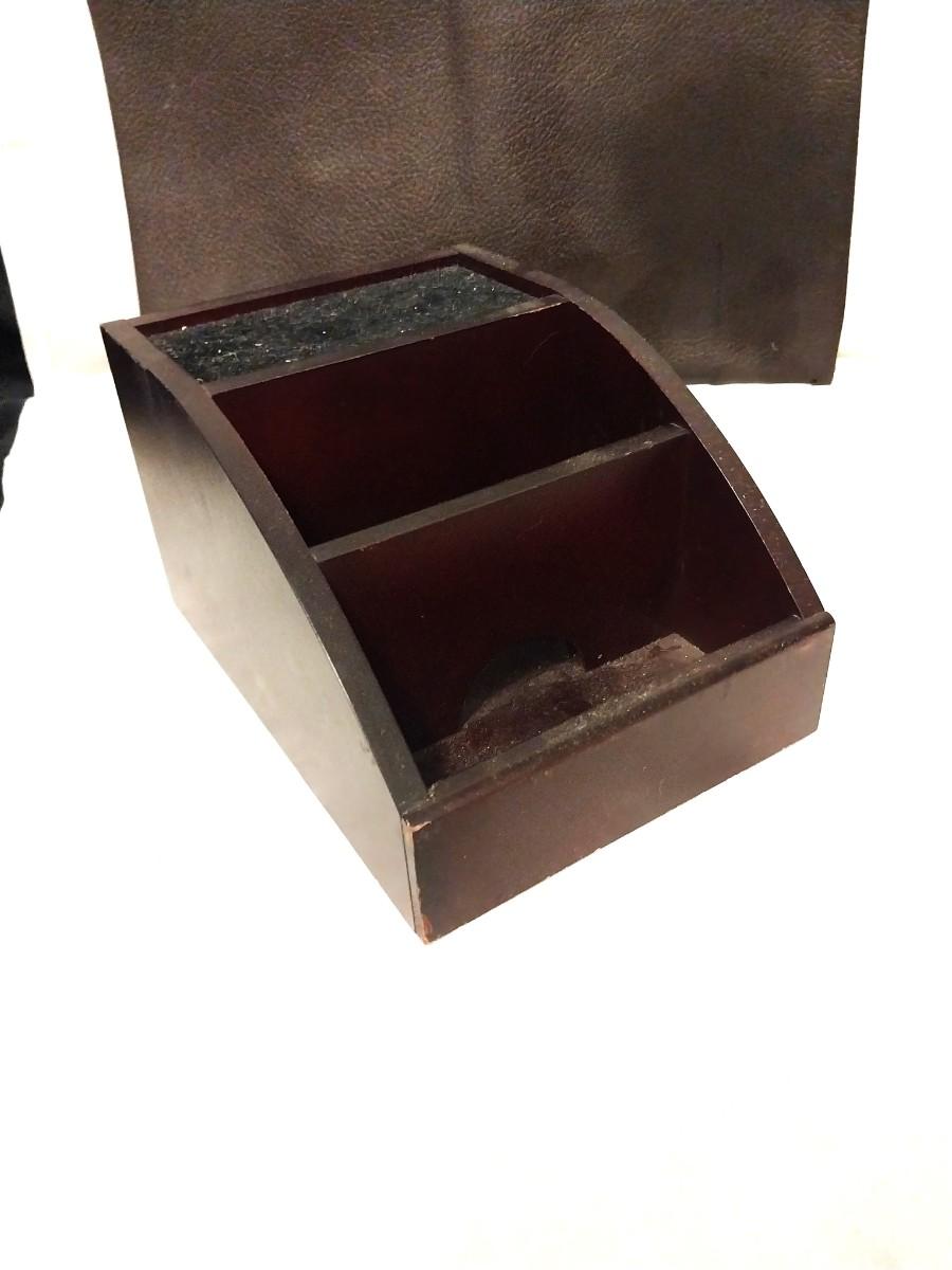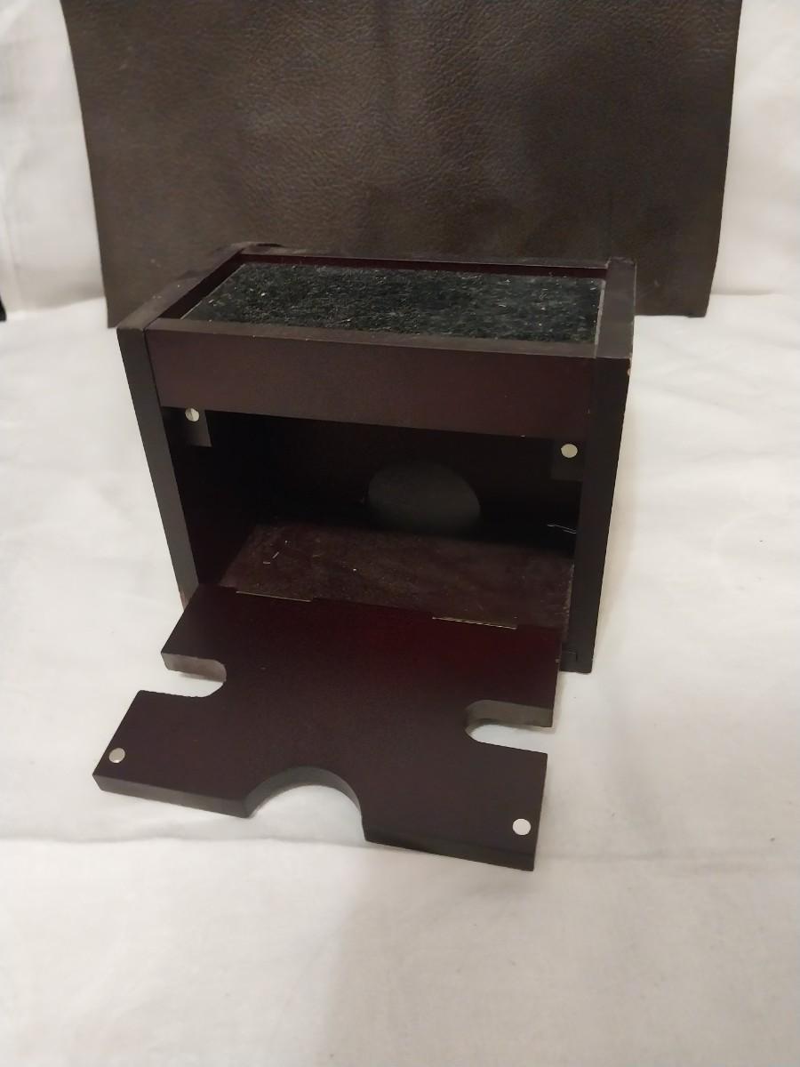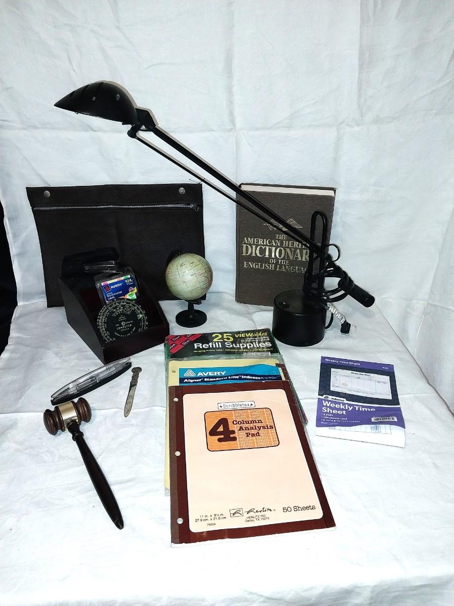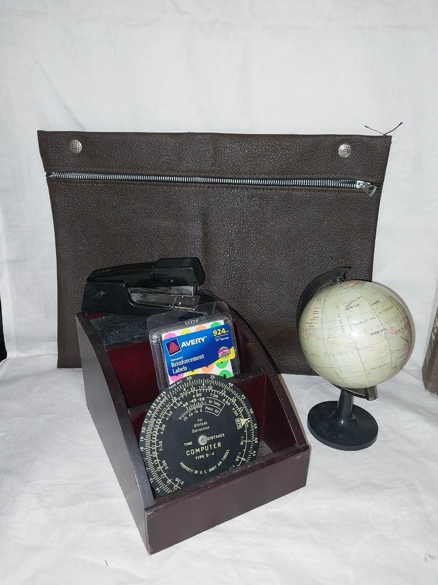 DESK LAMP-SMALL GLOBE-GAUNTLET-WOODEN HOLDER WITH SECRIC STORAGE IN BACK-MORE