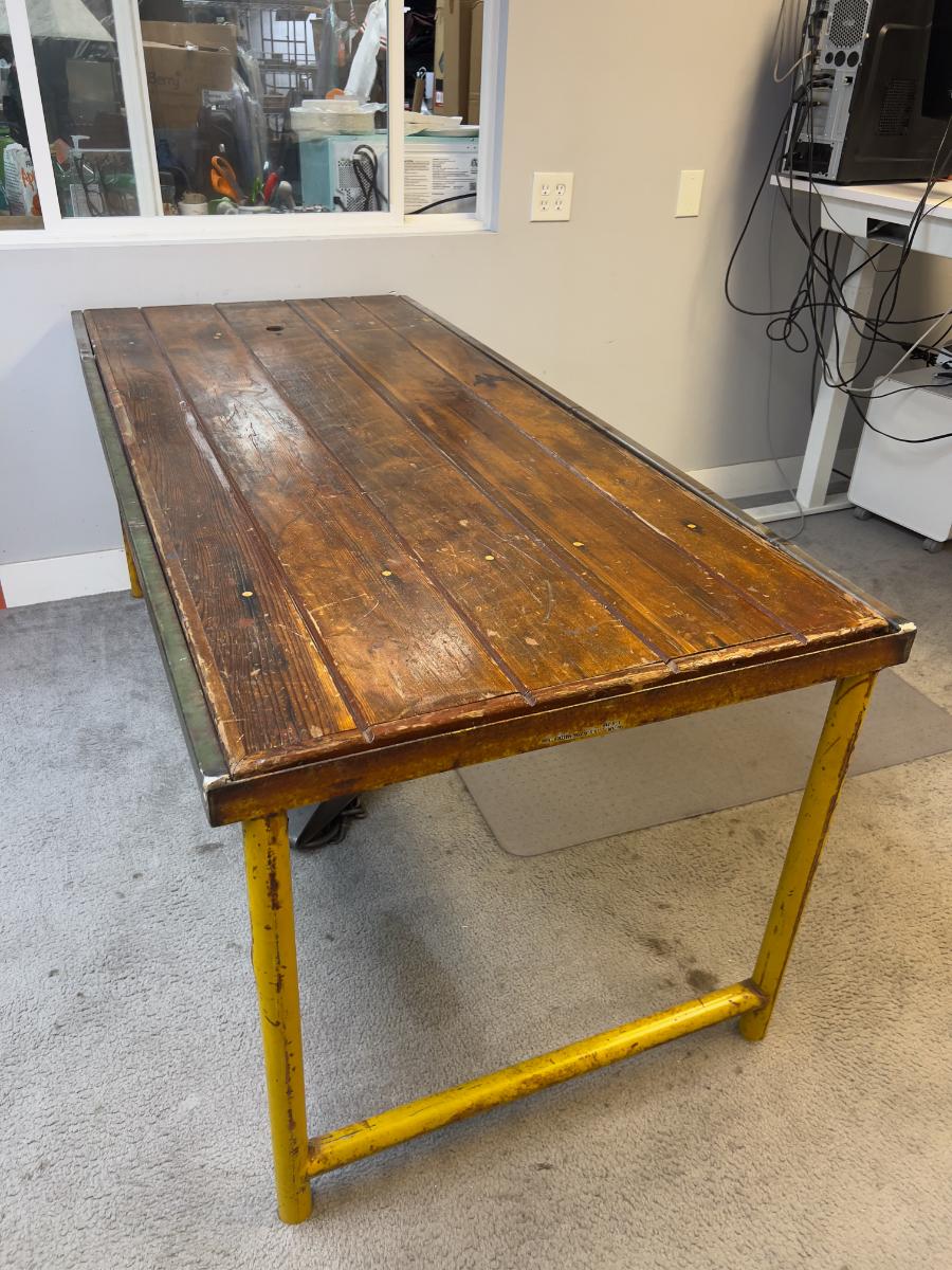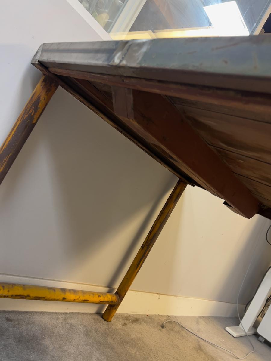 Welded up by a local artis builder Made from an old work table from Hill Field. Cool Piece?