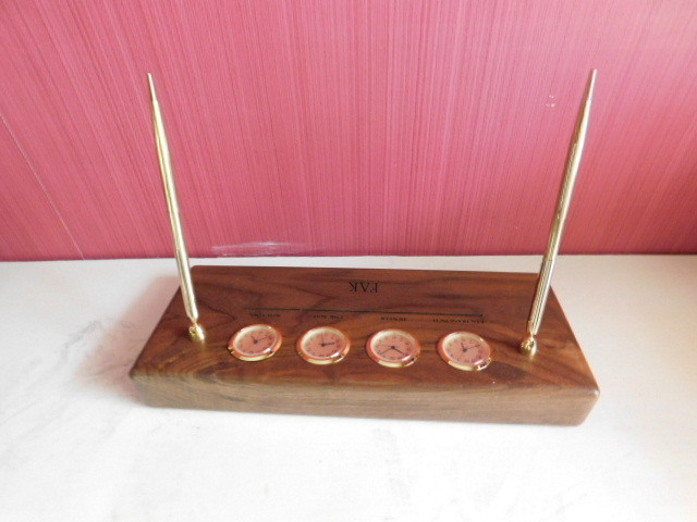 Desk Top Pen Set with Time Zone Clocks (Monogramed)
