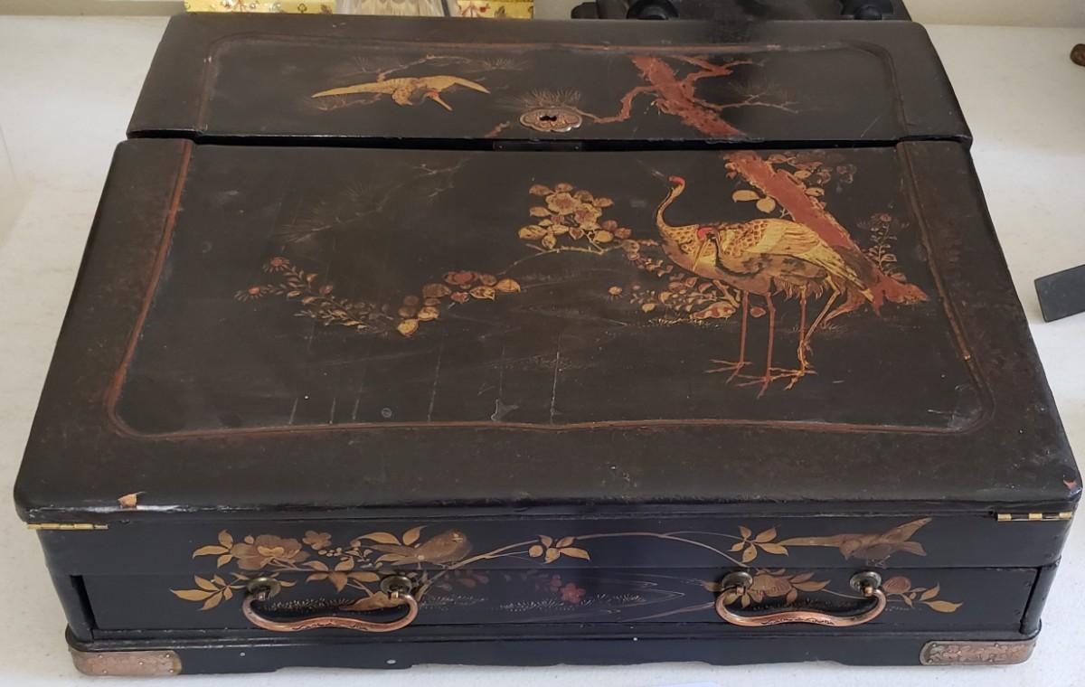 Circa 1860s English Lap Desk with Chinoiserie Decoration Lot