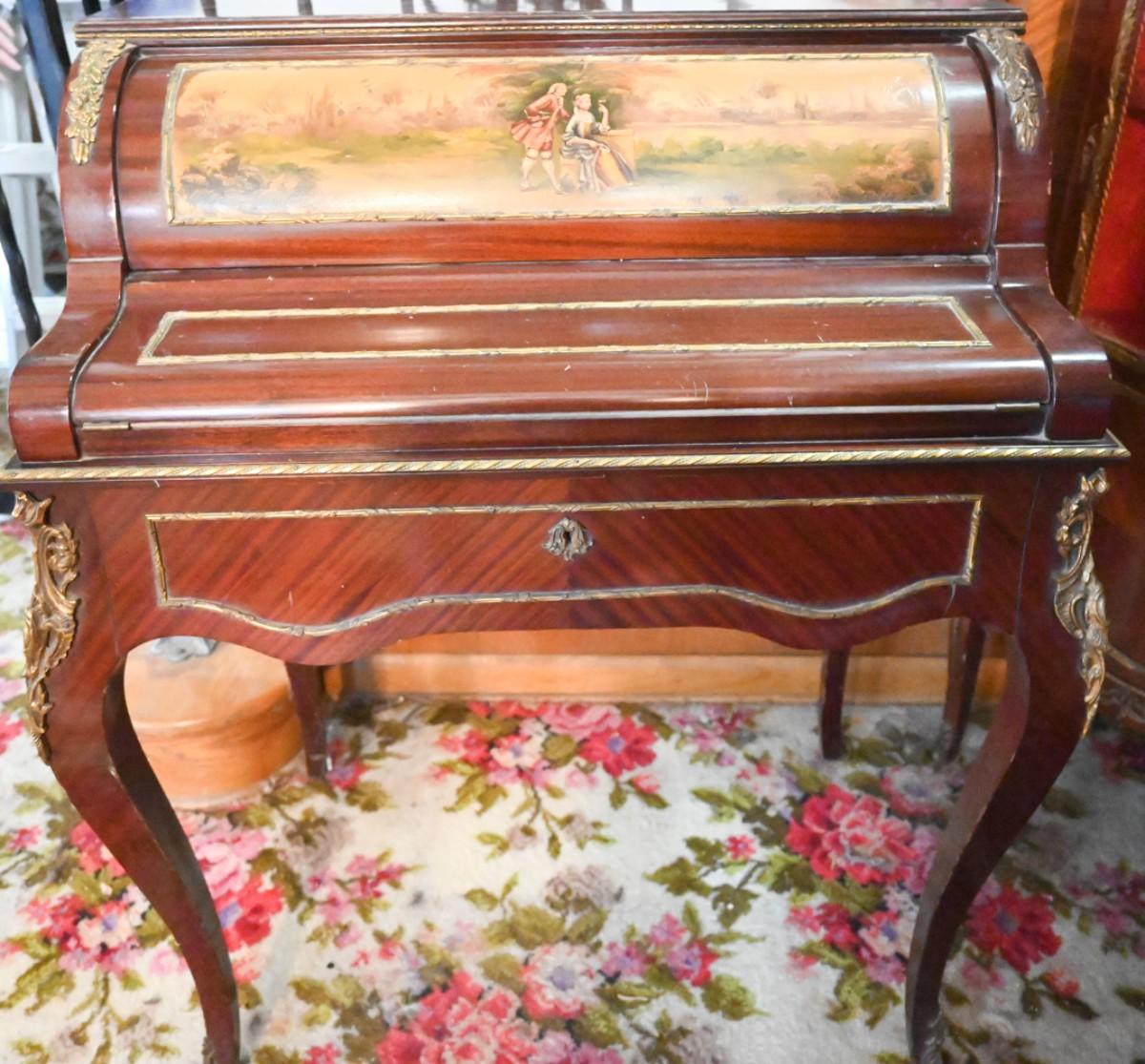 VICTORIAN / COLONIAL DESK WITH ART THAT FOLDS DOWN BY OPENING DRAWER- COMES WITH KEY