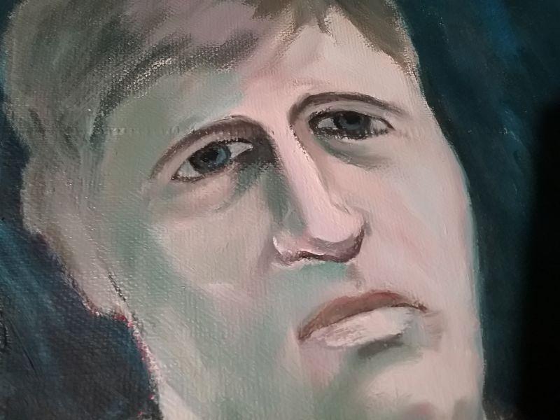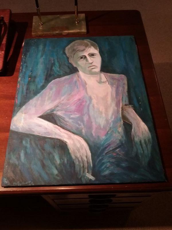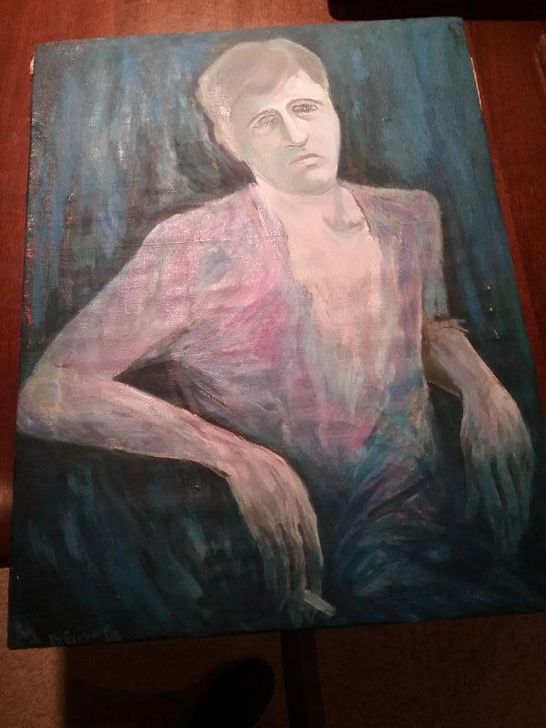 albanian artist Besnik Erebara painting of man in "Despair" during civil unrest 1993. Signed, dated by artist. Bought on mission trip to Albanian. Not framed. Approx. 26x20