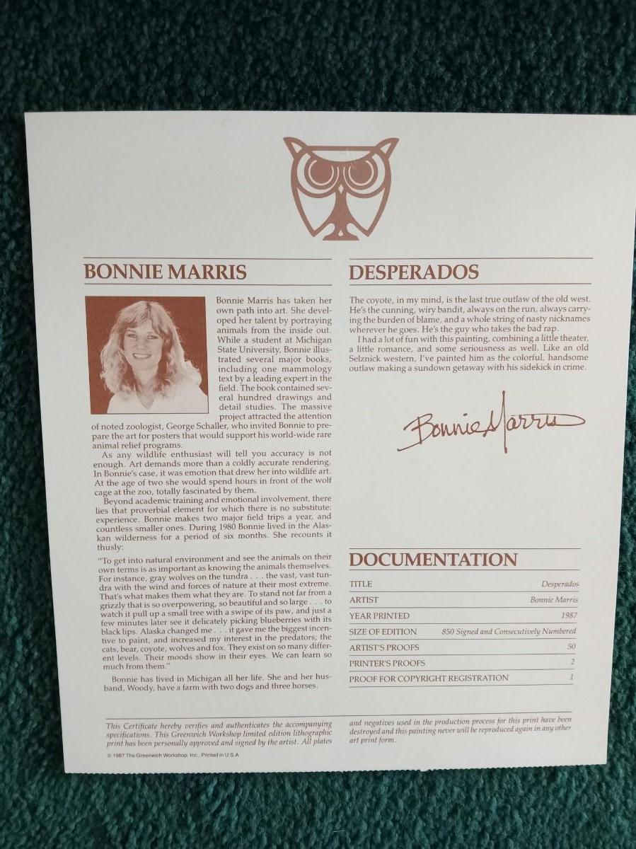 THE FRAMED PRINT BY MARRIS IS 37" X 22" AND INCLUDES A CERTIFICATE