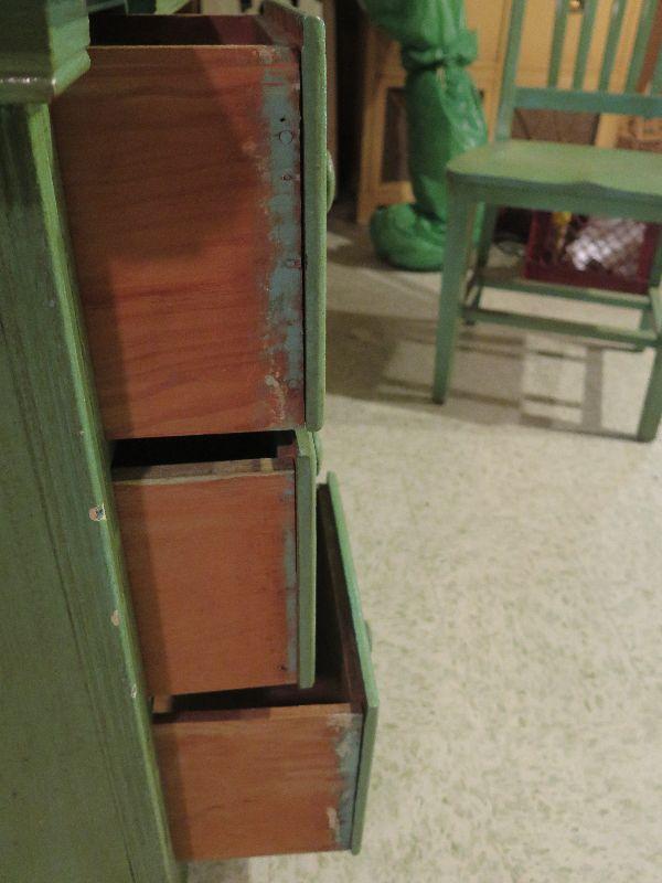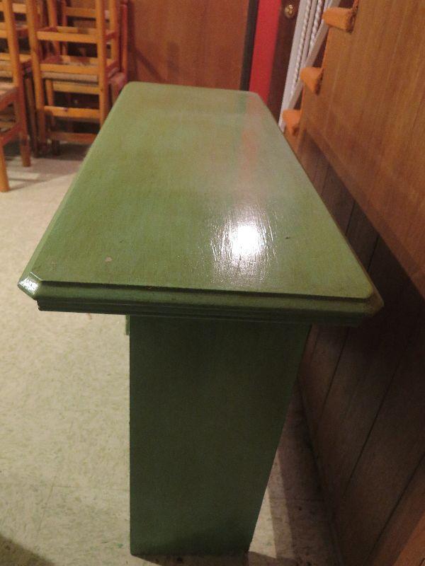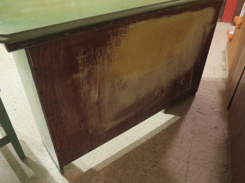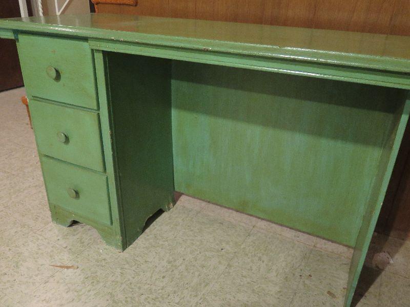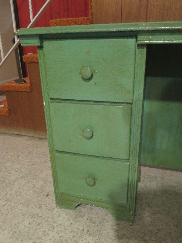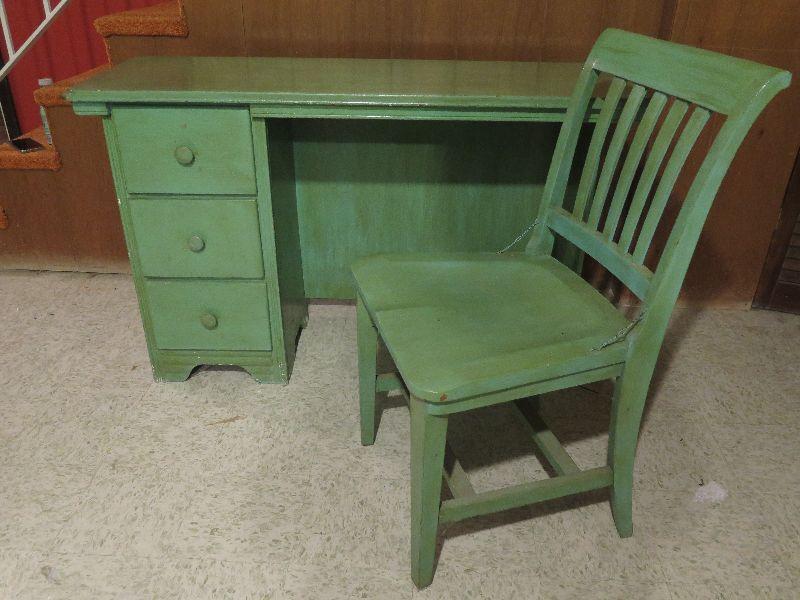 Wooden desk and chair. Desk has damage on bottom. 48x17.5x29 Located in basement. Please review all photos and read Terms and Conditions before placing a bid. Pick up is Wednesday, November 20 from 4-7pm and Saturday, November 23 from 9am-2pm in Mantua, New Jersey. All sales are final. All sales are as is, where is. Please bring all boxes, tools, and muscle needed to remove your items. Any photo props are not included. All measurements are approximate. Items come from dog-friendly home.