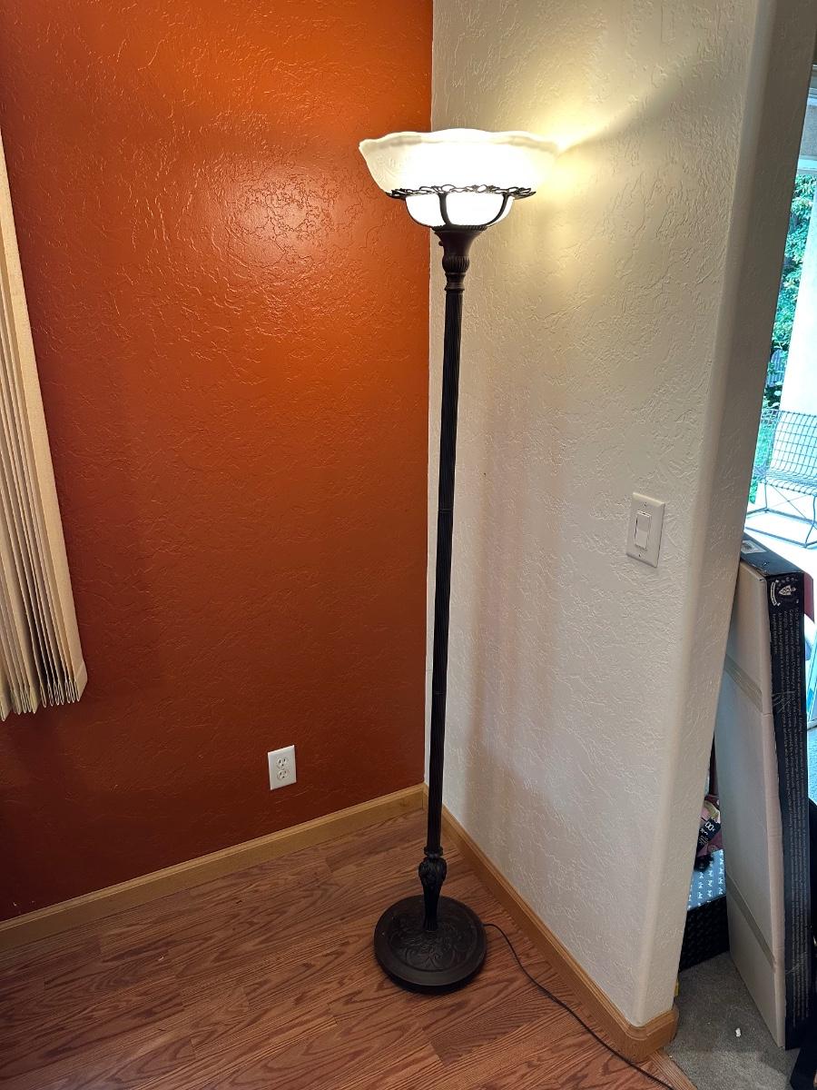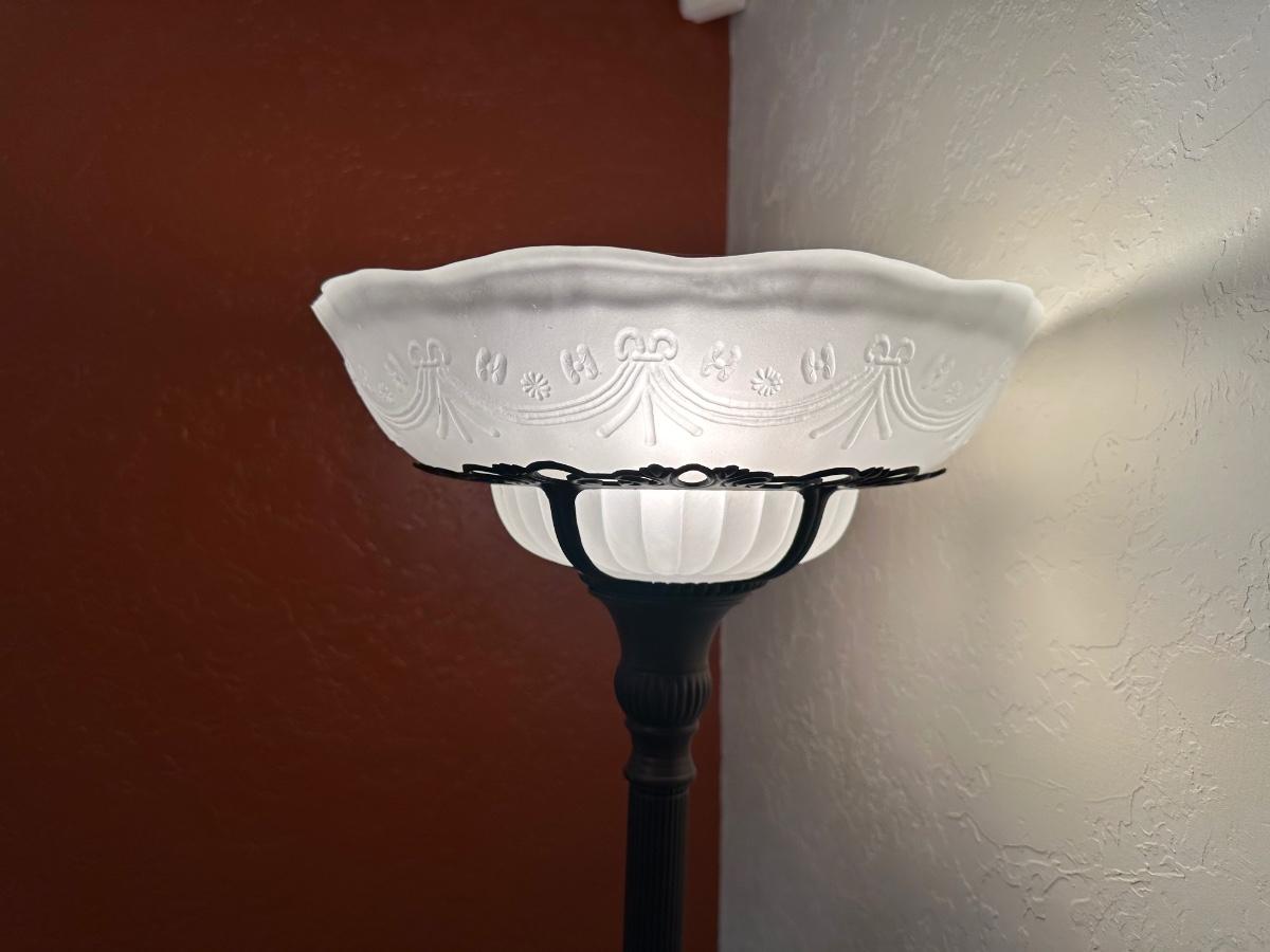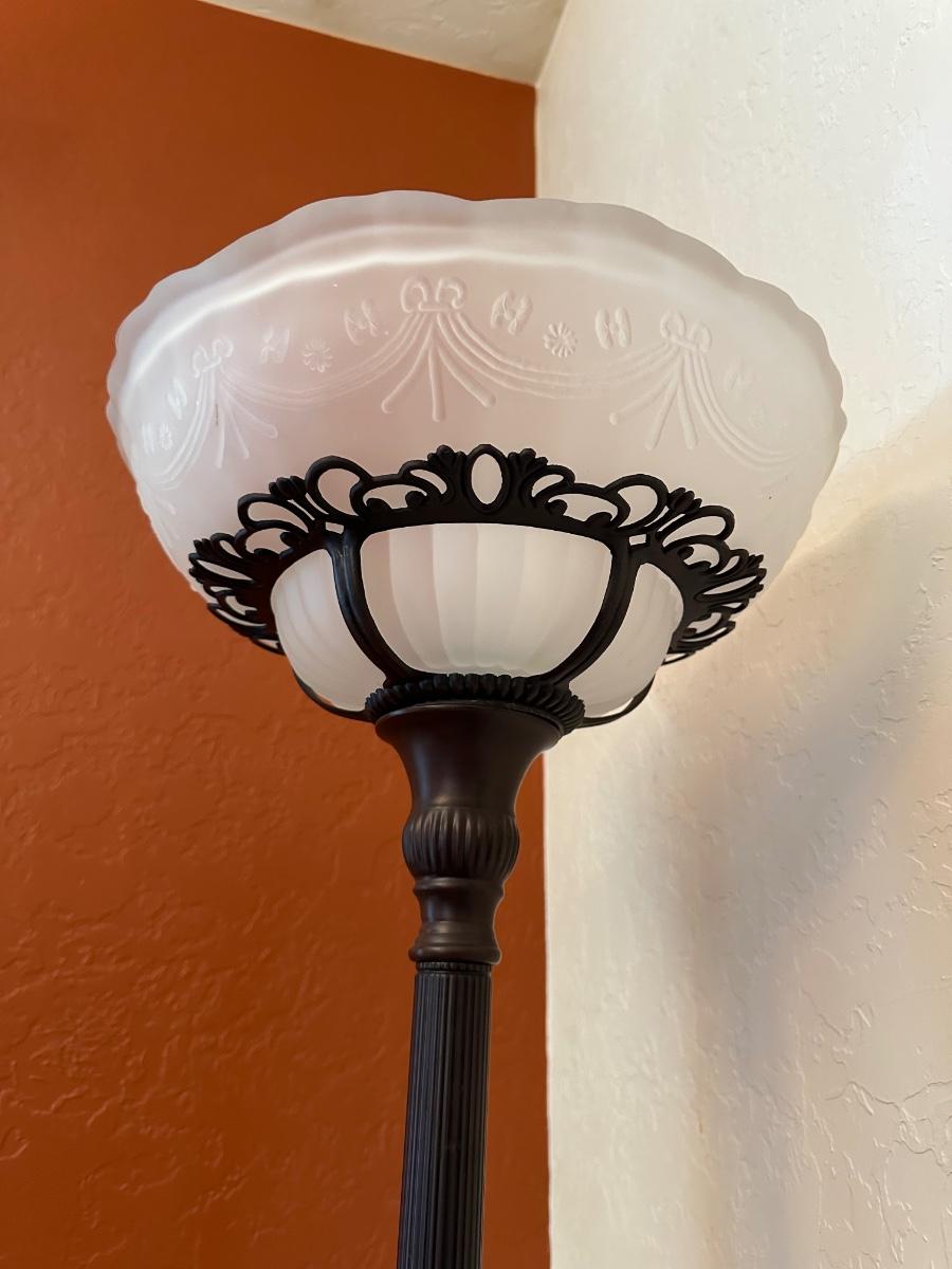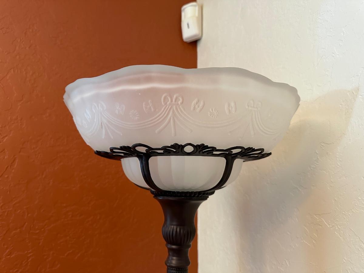 DETAILED FLOOR LAMP WITH GLASS SHADE