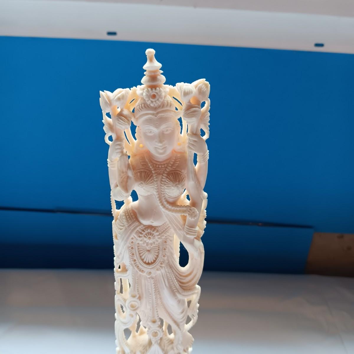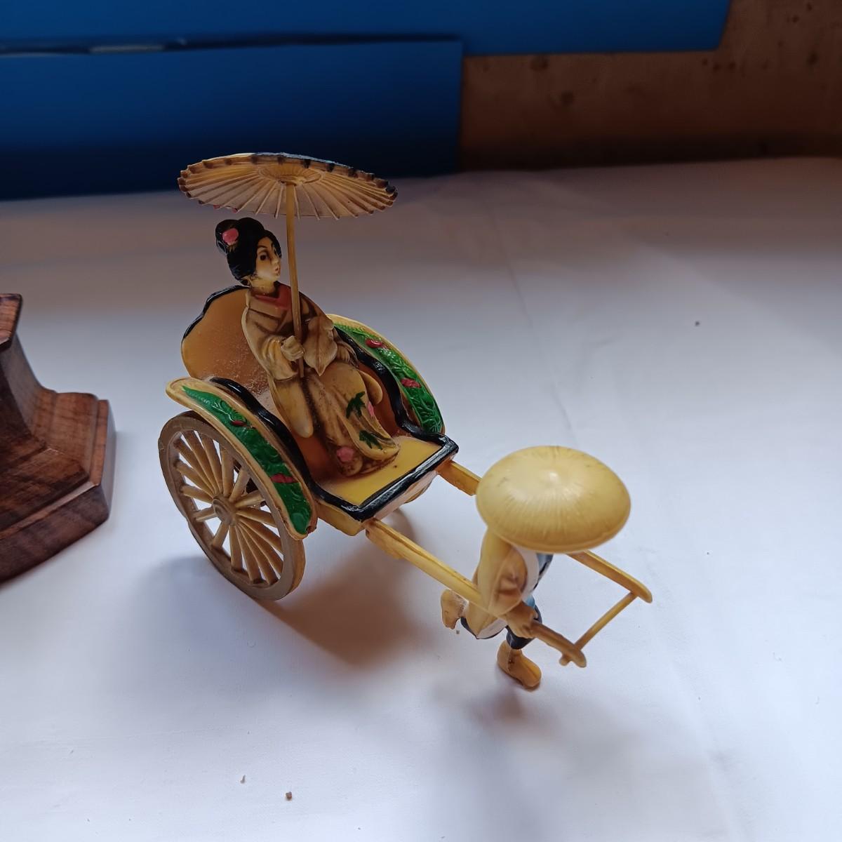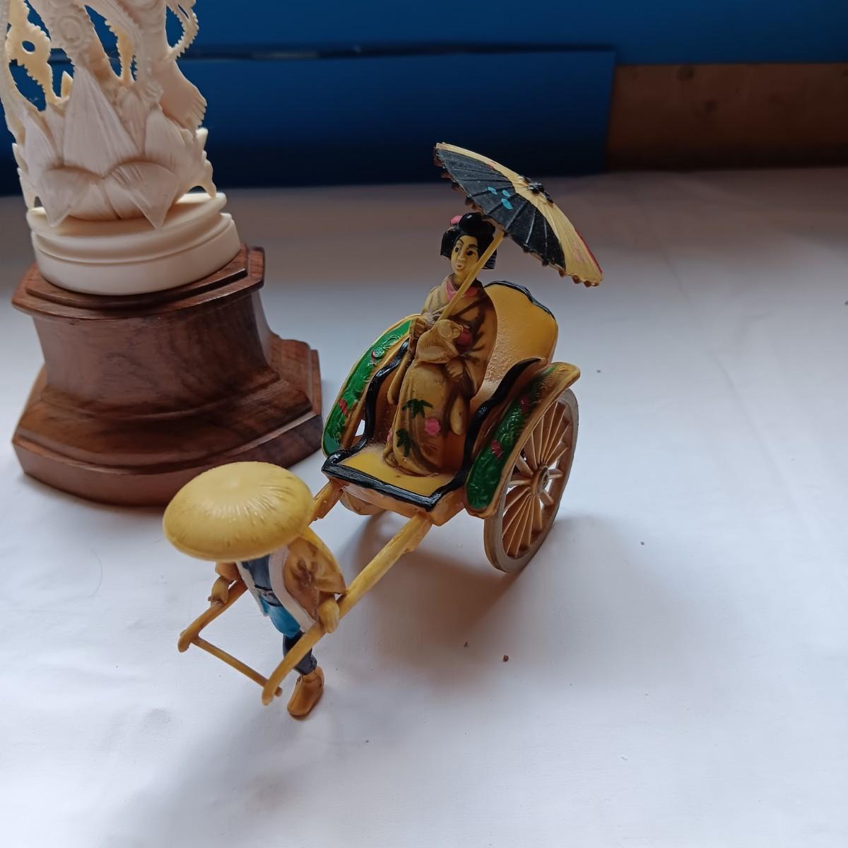 DETAILED, HAND CARVED HINDU GODDESS SARASWATI AND A CELLULOID RICKSHAW