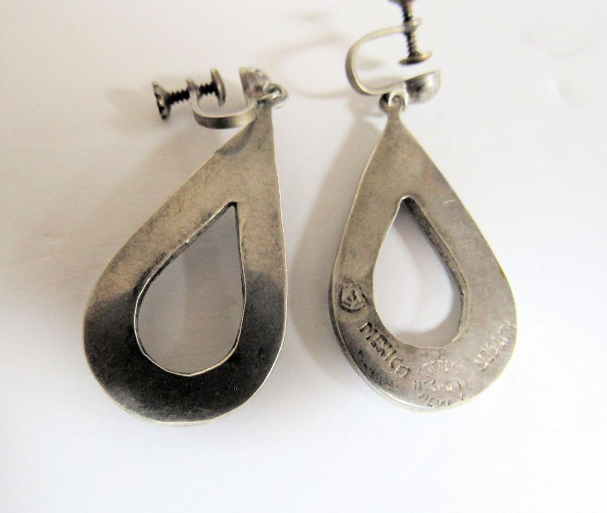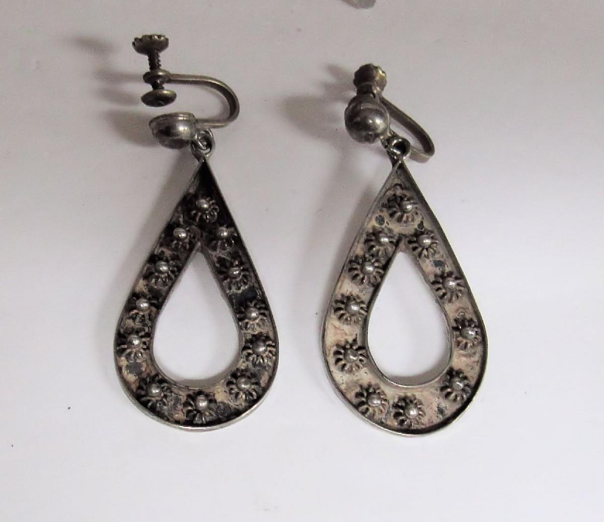 Detailed Hand Made Sterling Silver Mexico Drop Earrings