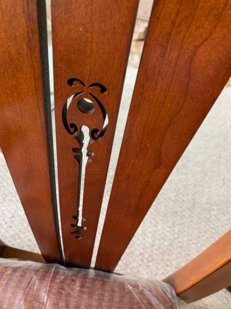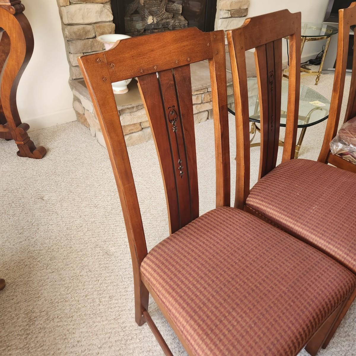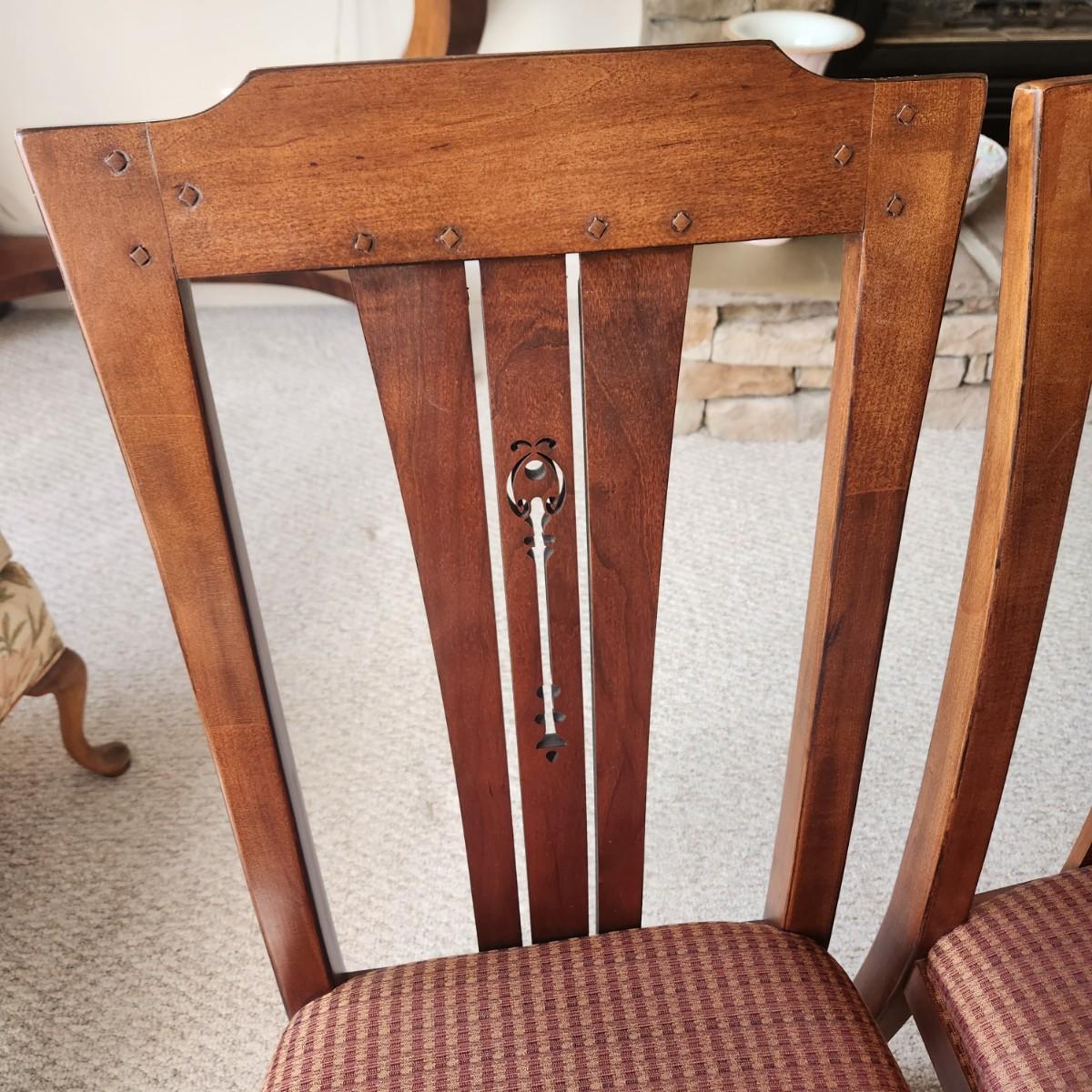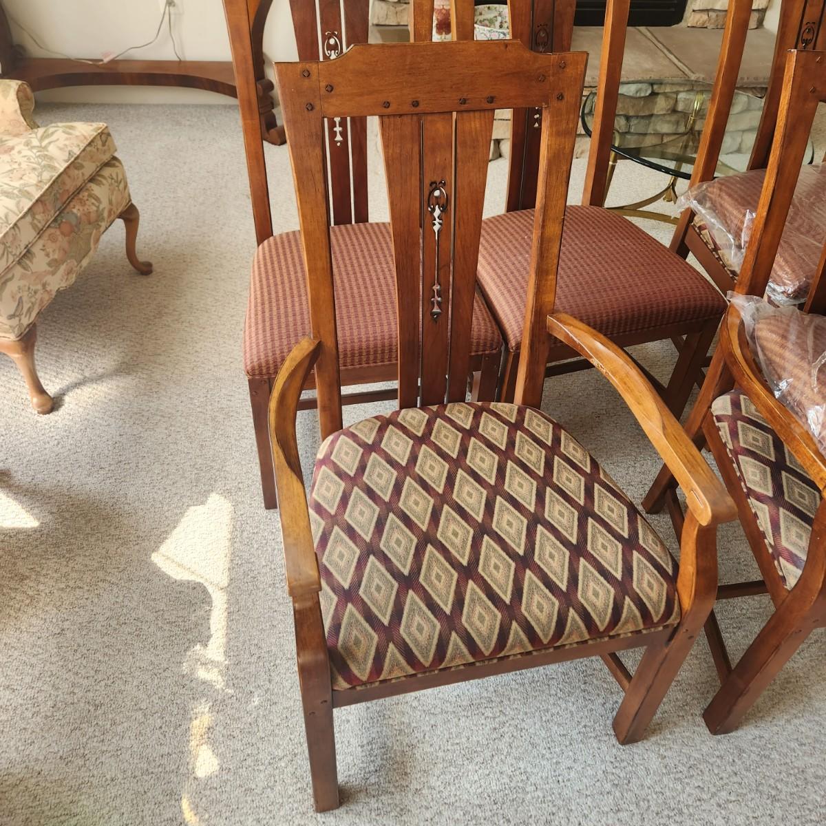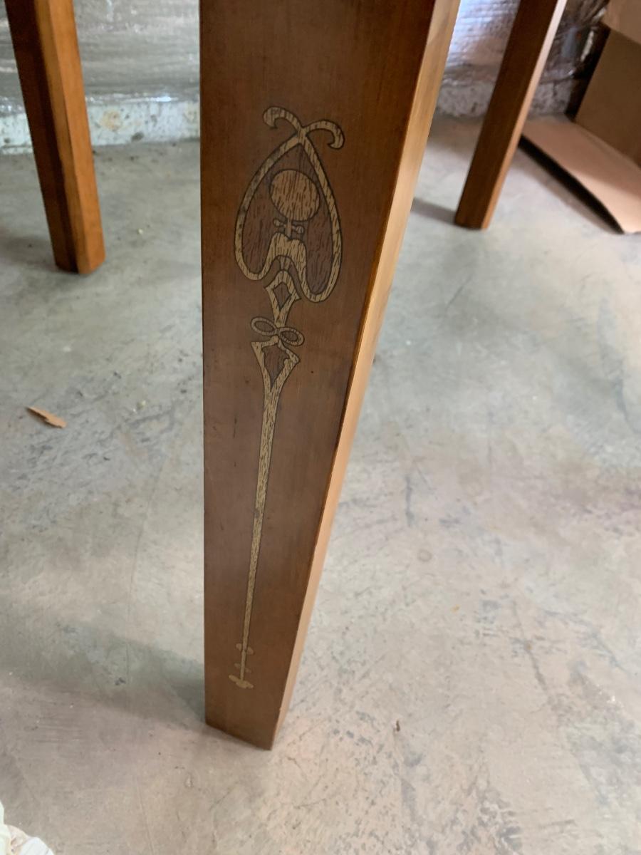Detailed Inlaid Clean Drexel Dining Table, Leaf, Chairs, NEW Seats/Fabric