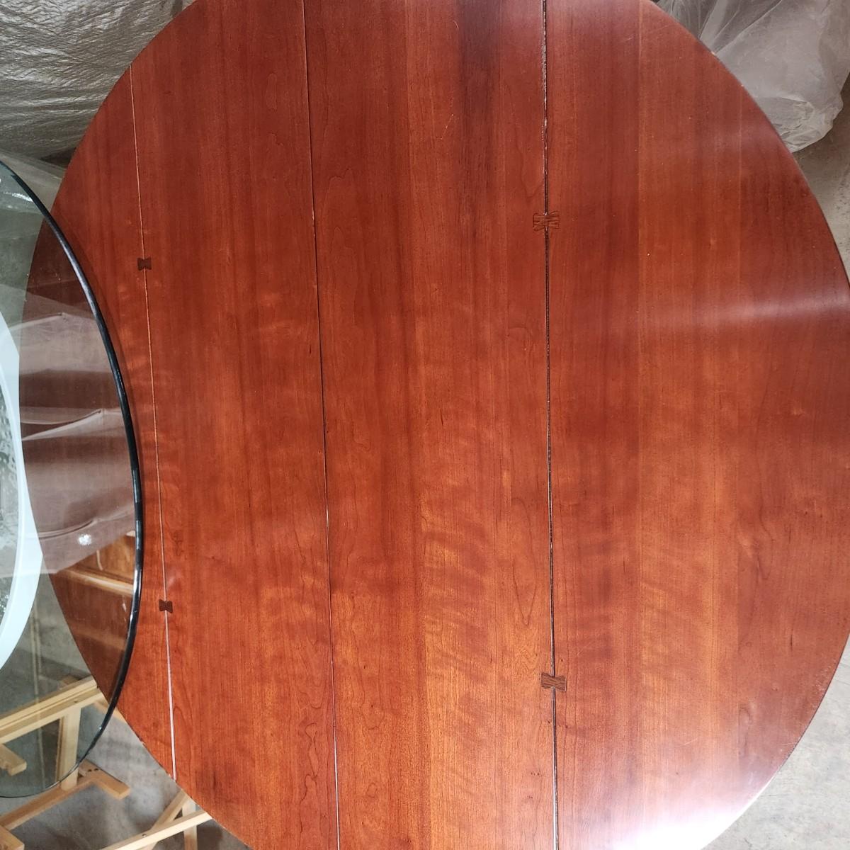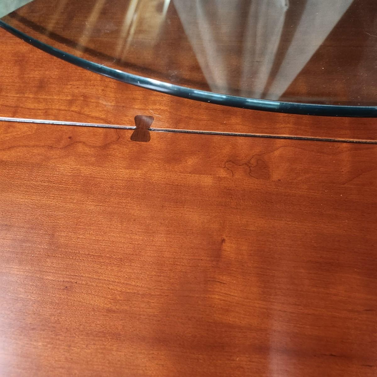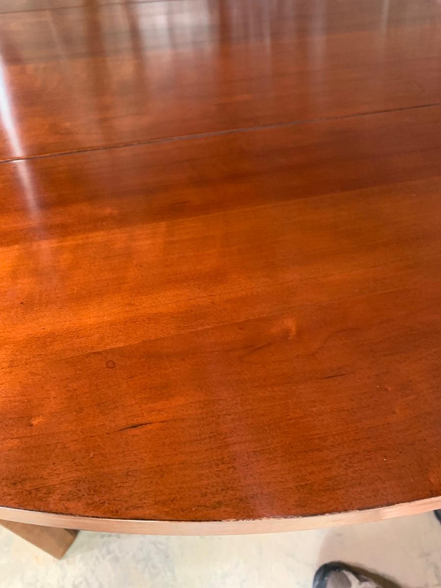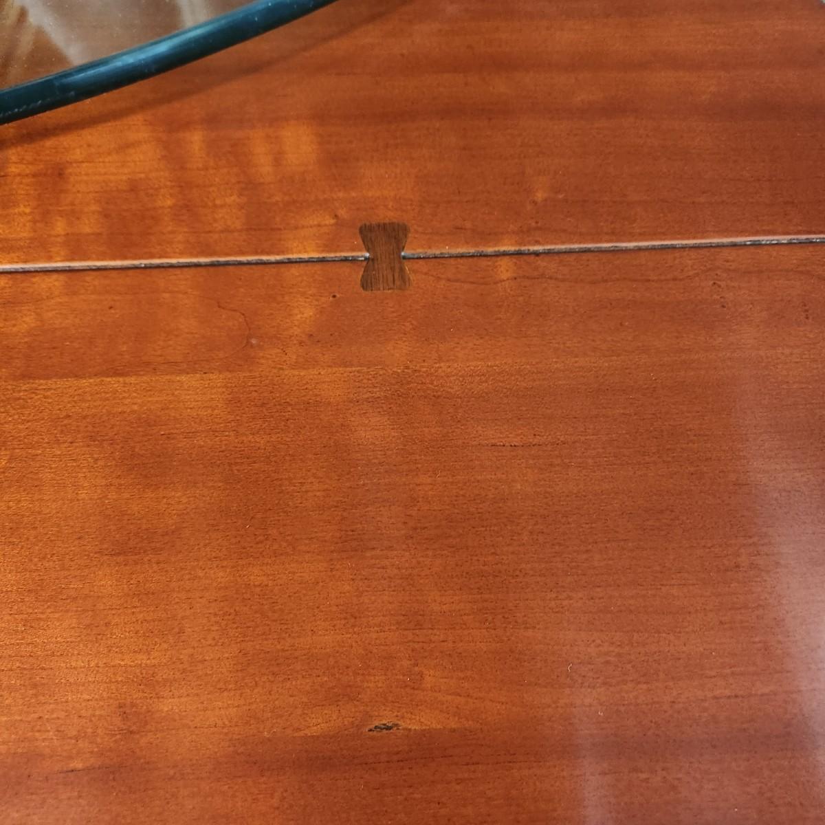 Detailed Inlaid Clean Drexel Dining Table, Leaf, Chairs, NEW Seats/Fabric