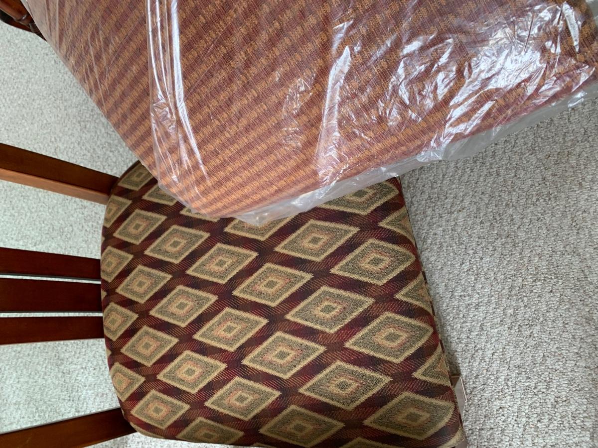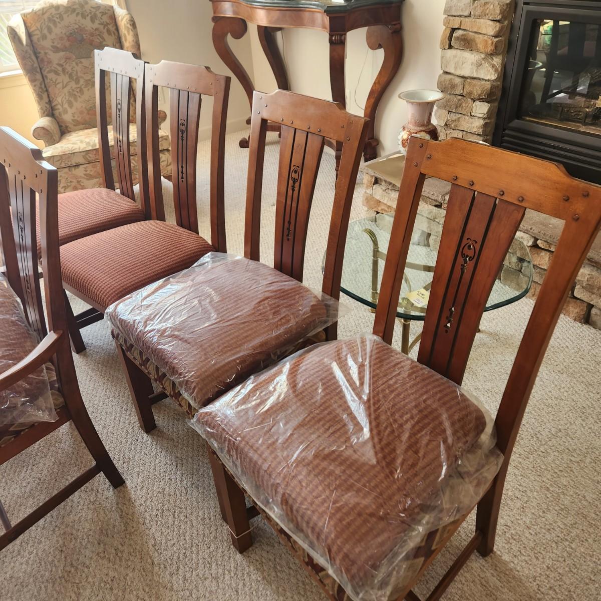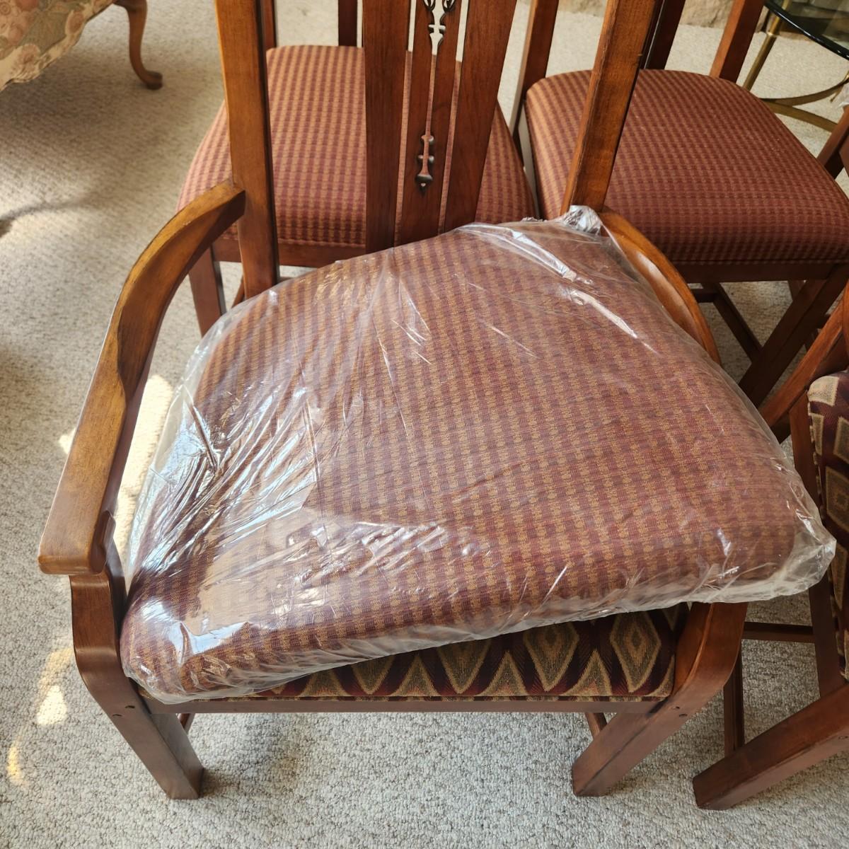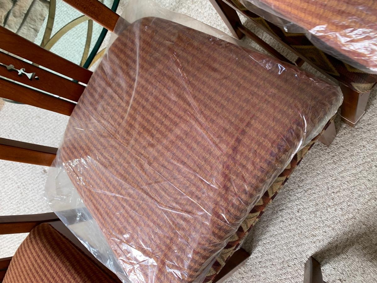 PLEASE NOTE: Table and Chairs in very nice condition (thick glass top included to keep it nice) PLUS NEW Seats for the chairs - not just new fabric, the entire seat is also here for an upgrade.