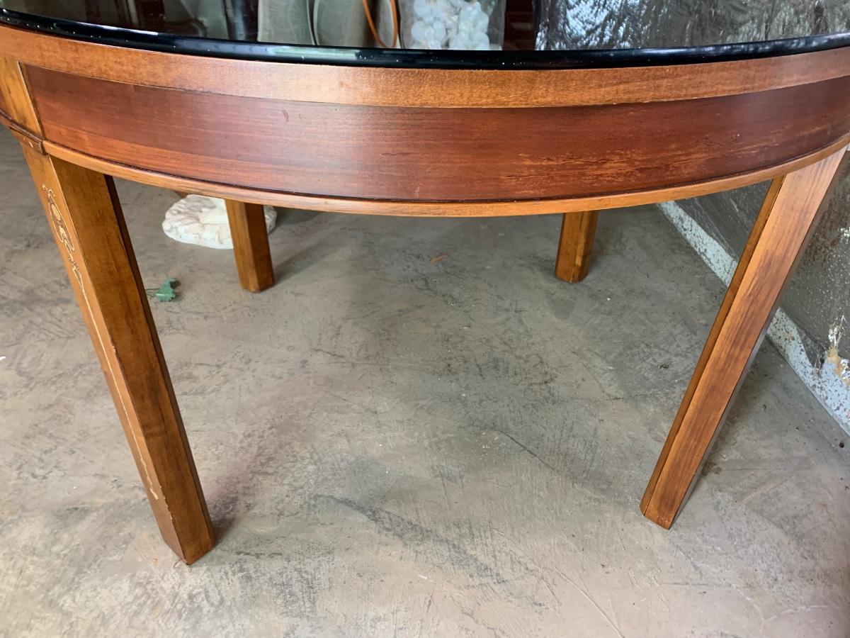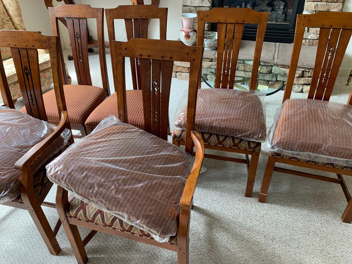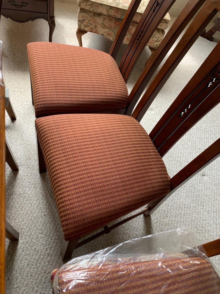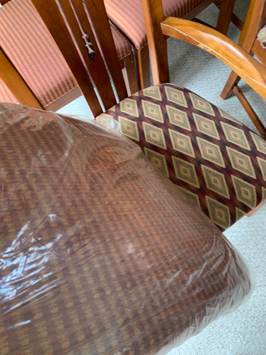 PLEASE NOTE: Table and Chairs in very nice condition (thick glass top included to keep it nice) PLUS NEW Seats for the chairs - not just new fabric, the entire seat is also here for an upgrade.