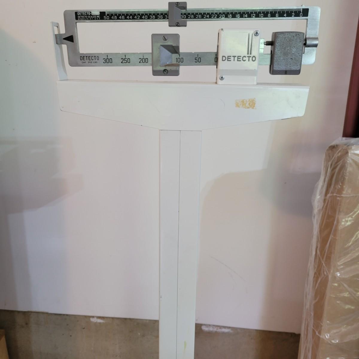 A Detecto balance scale that appears to be working accurately. It measures approximately 17" x 20" x 58.5"H. Local pickup only