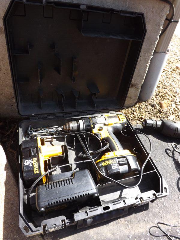 DeWalt 18v Cordless drill. Very good used condition. **Please read Terms and Conditions before placing a bid. Pick up is Sunday, September 15, 2019 from 11am to 4pm and Tuesday, September 17 from 4pm-7pm in Sicklerville. All sales are final. All sales are as is, where is. Please review all photos. Any props included in photos are not included in listing. All measurements are approximate.