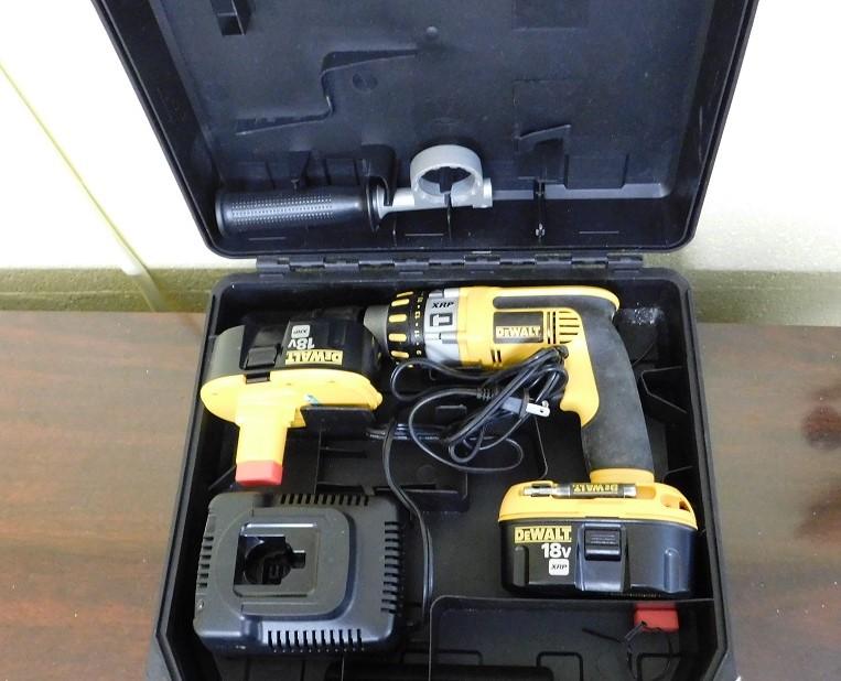 DeWalt 18V Variable Speed Drill with Battery Charger and Case appears to be in largely unused condition.