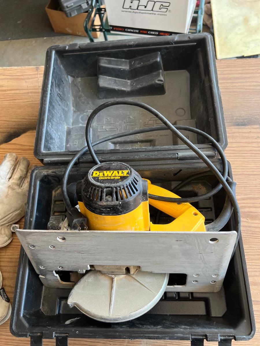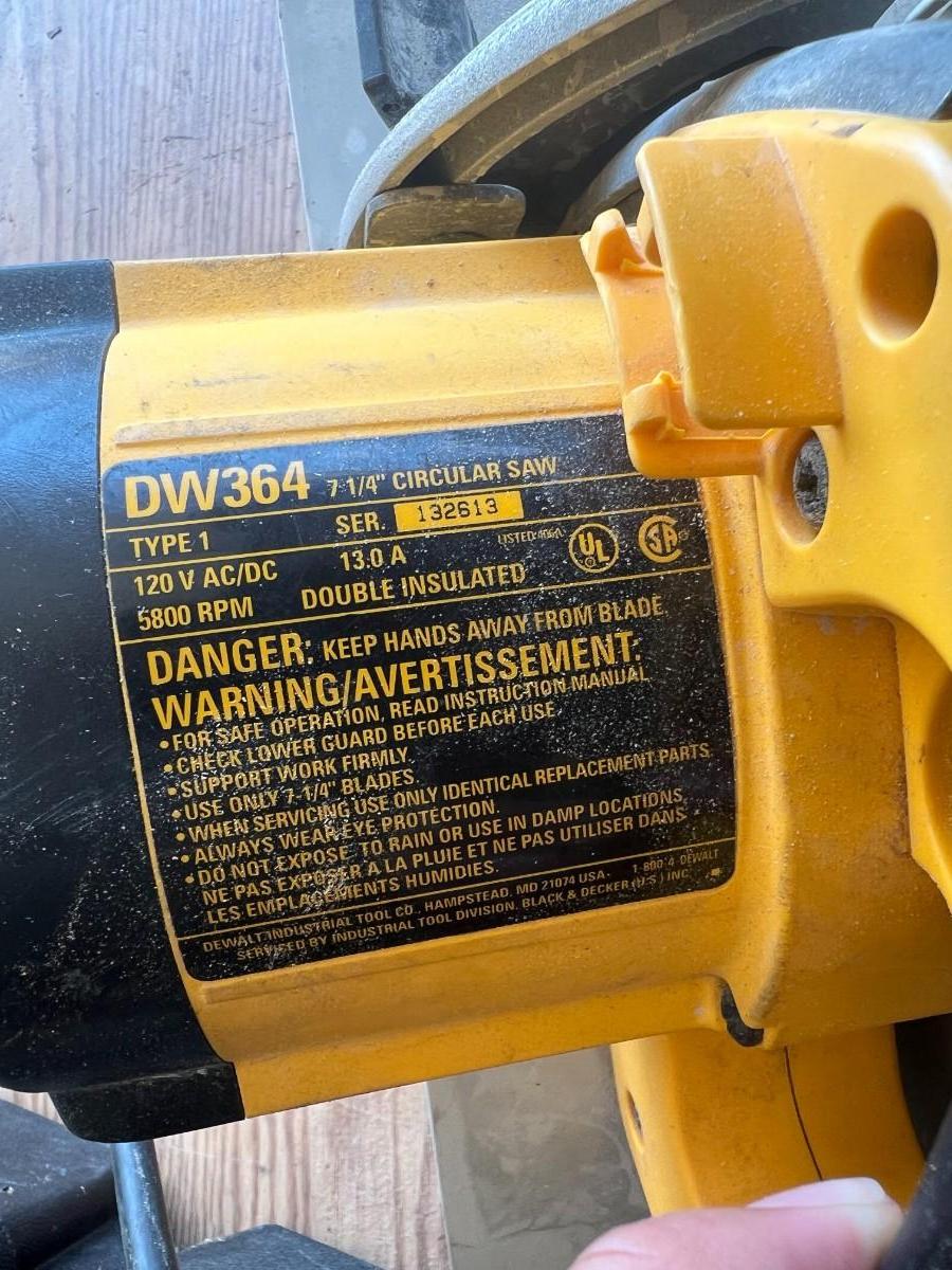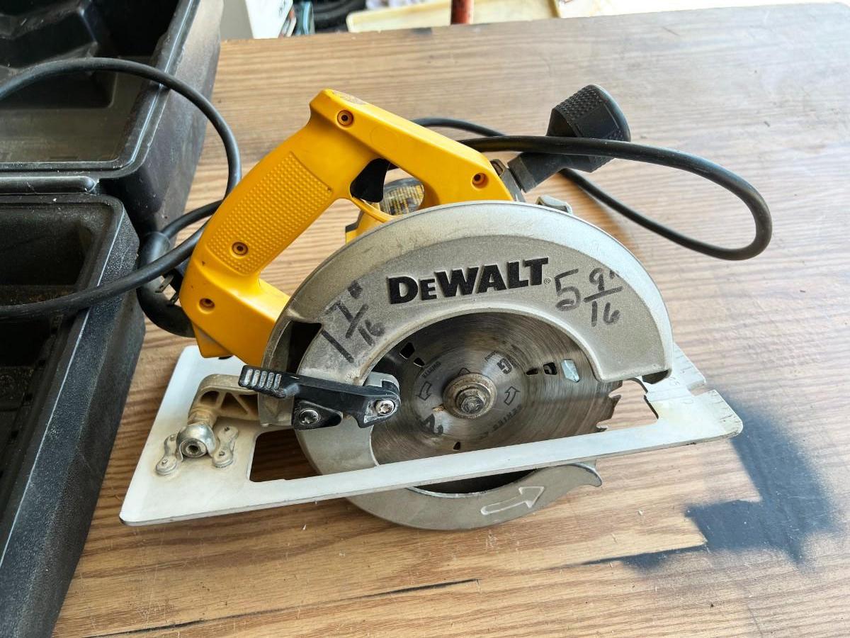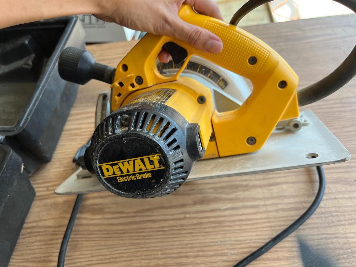 Used DeWalt 7 1/4" Circular Saw, Model DW364. Includes carrying case and assorted extra blades.