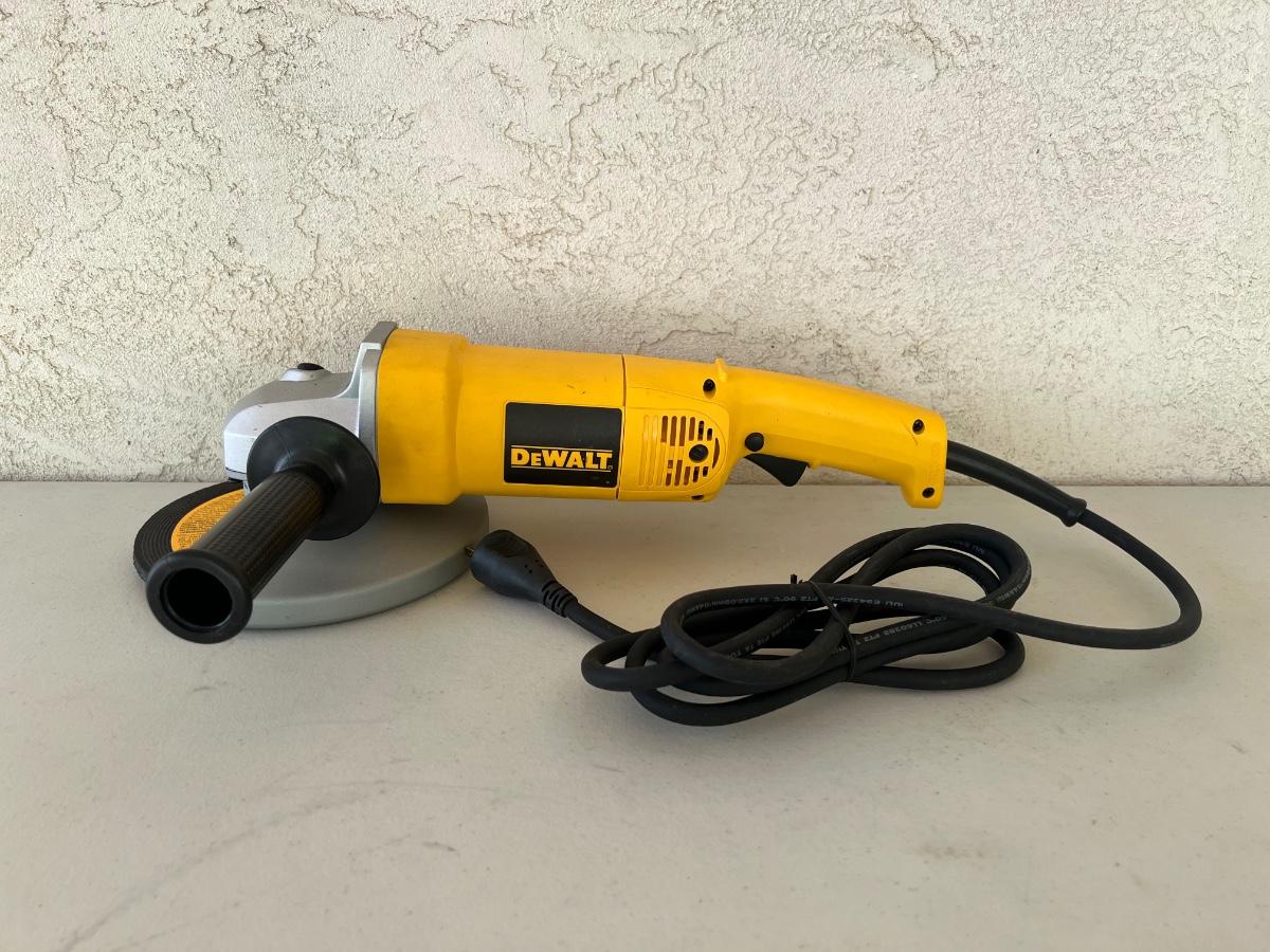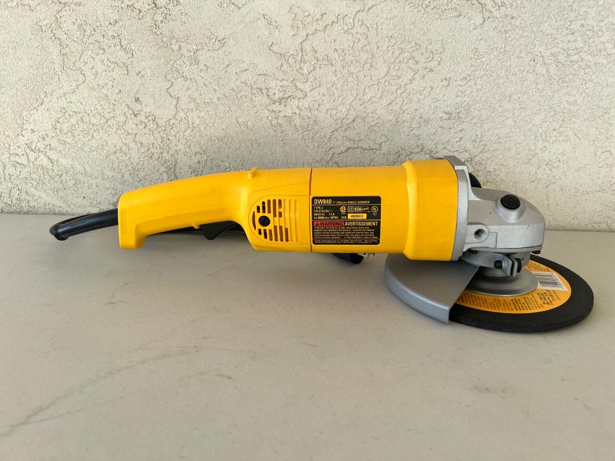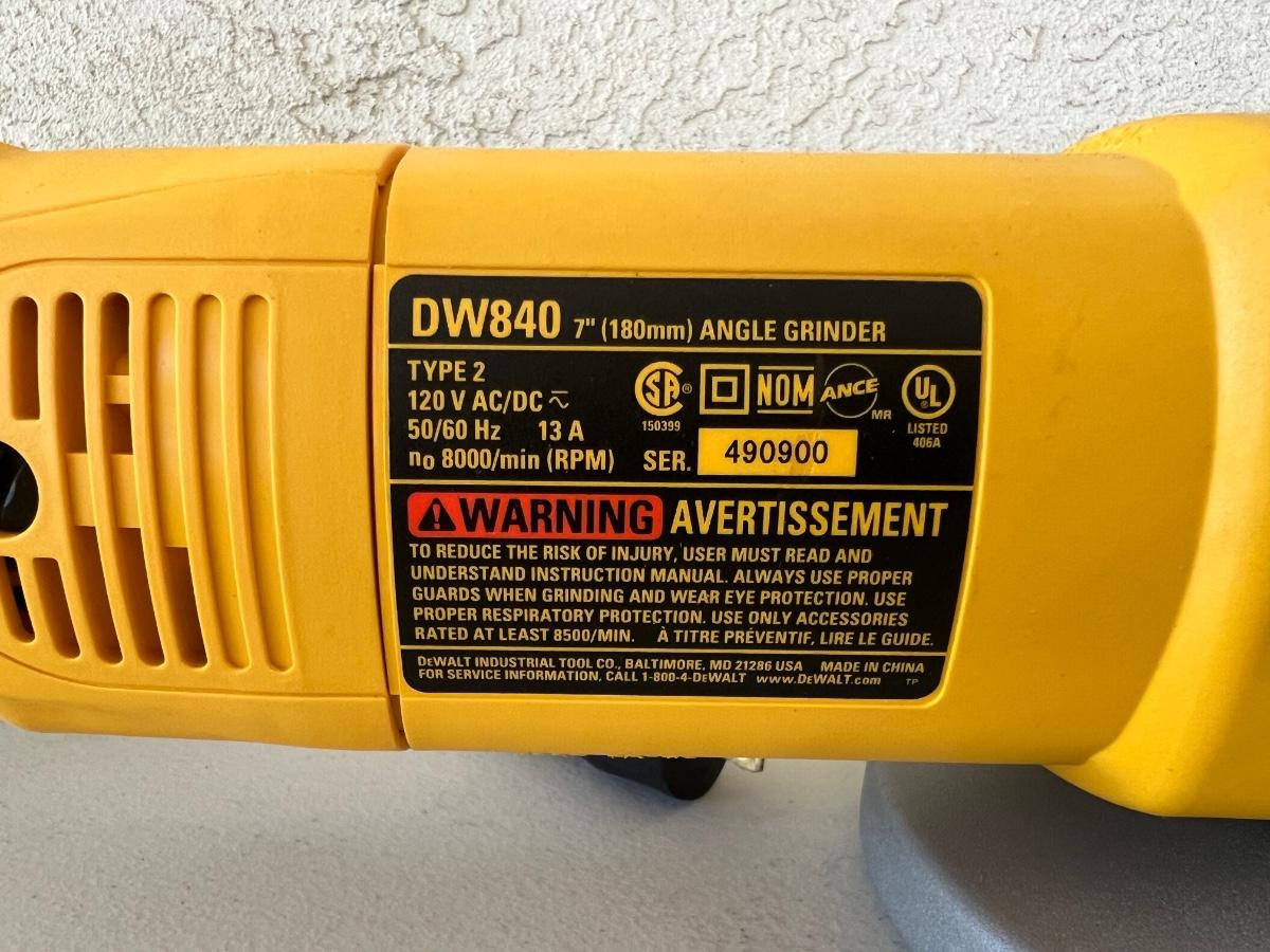 Dewalt corded 7in. angle grinder. Model DW840. Comes with 5 additional grinding wheels. Looks to have been never used. Tested and works as it should.