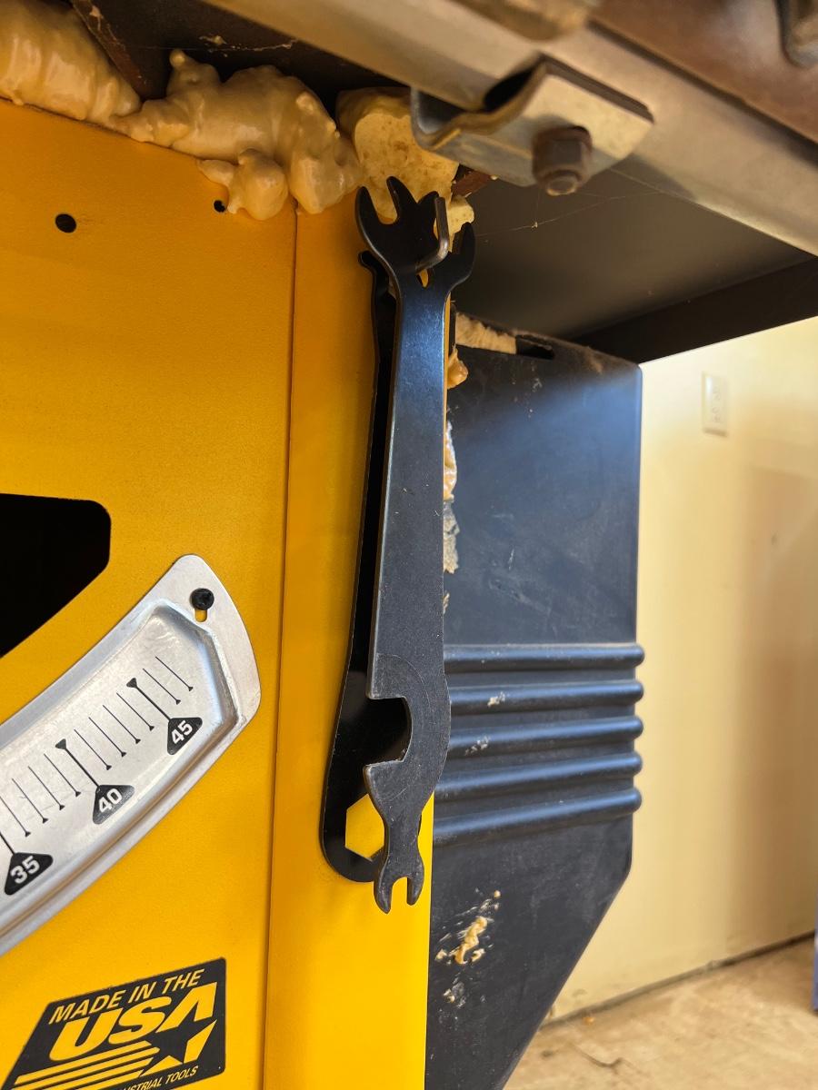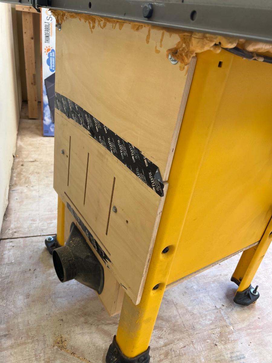 Client has built a custom dust collector underneath to collect dust. Can be removed. Comes with rolling attachment, not pictured