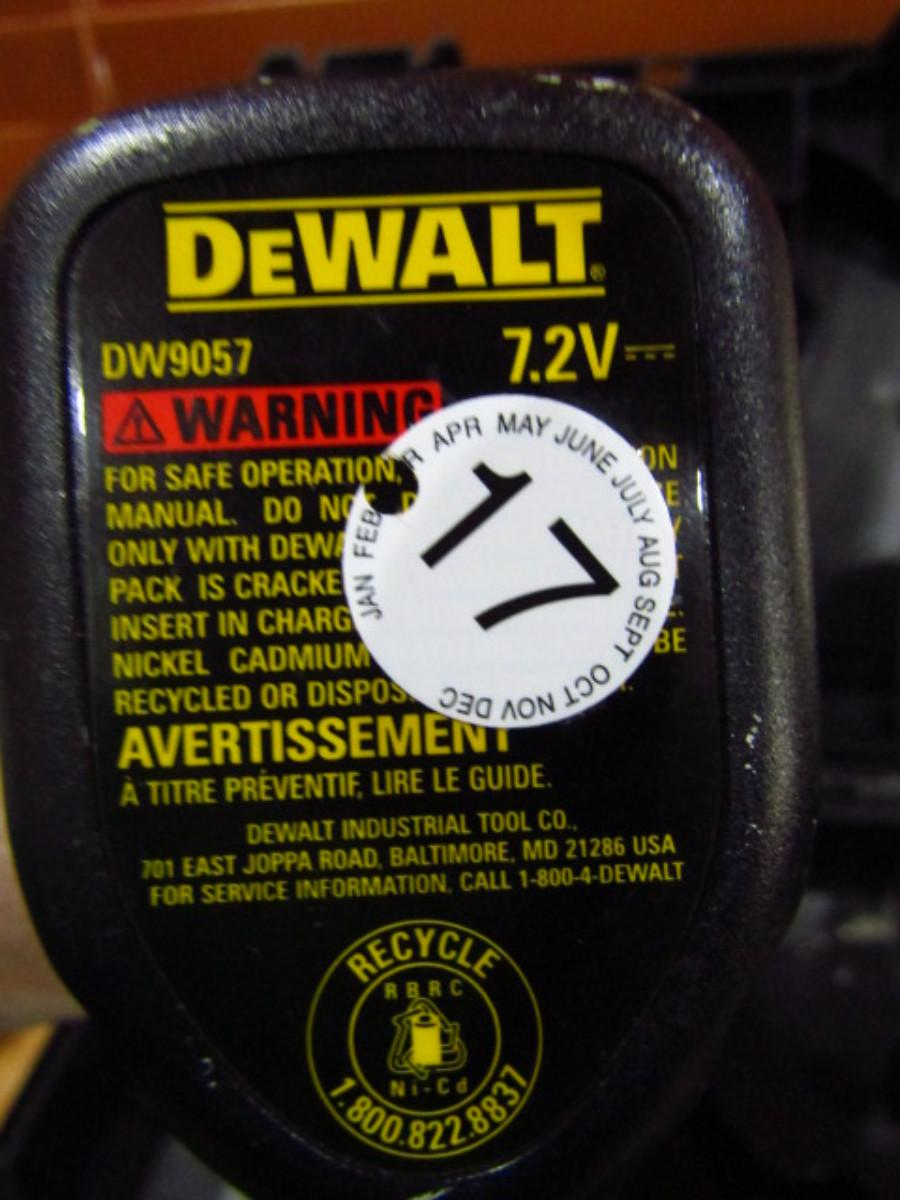 Dewalt Angle Head Drill with Battery and Charger- 7.2 Volts (W). The charger is not by Dewalt, but fits the battery.