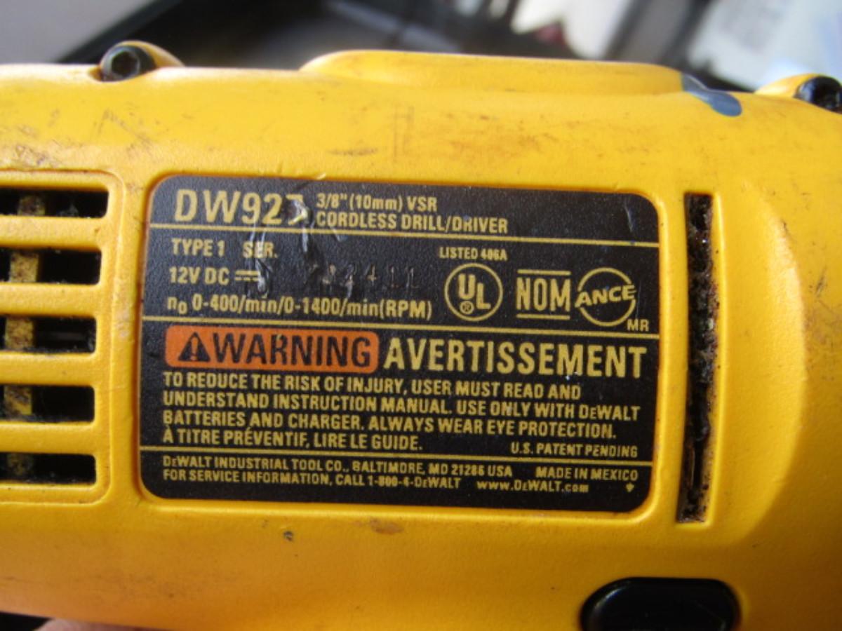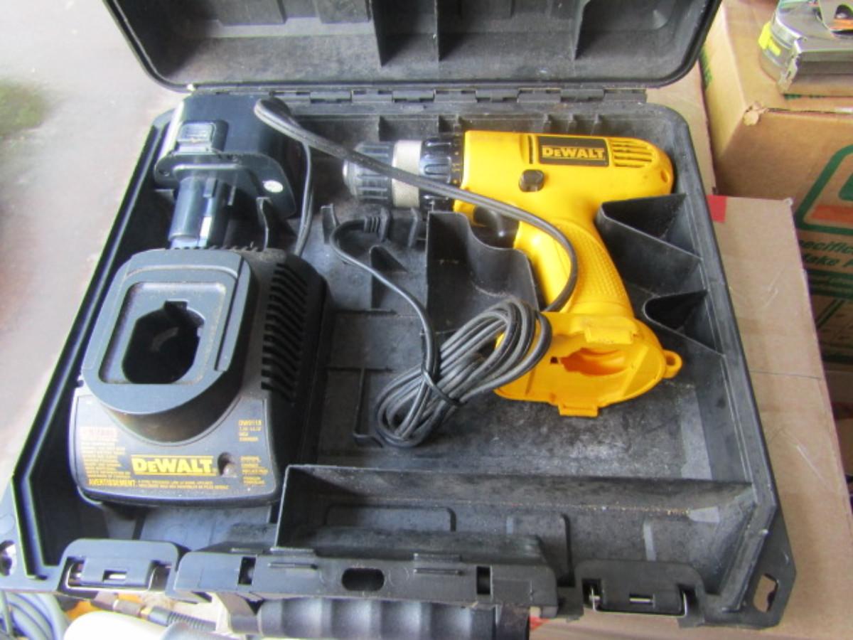 DeWalt Cordless Drill with Battery and Charger- 12 Volt. Please see all pictures- battery is compatible, but not Dewalt brand.