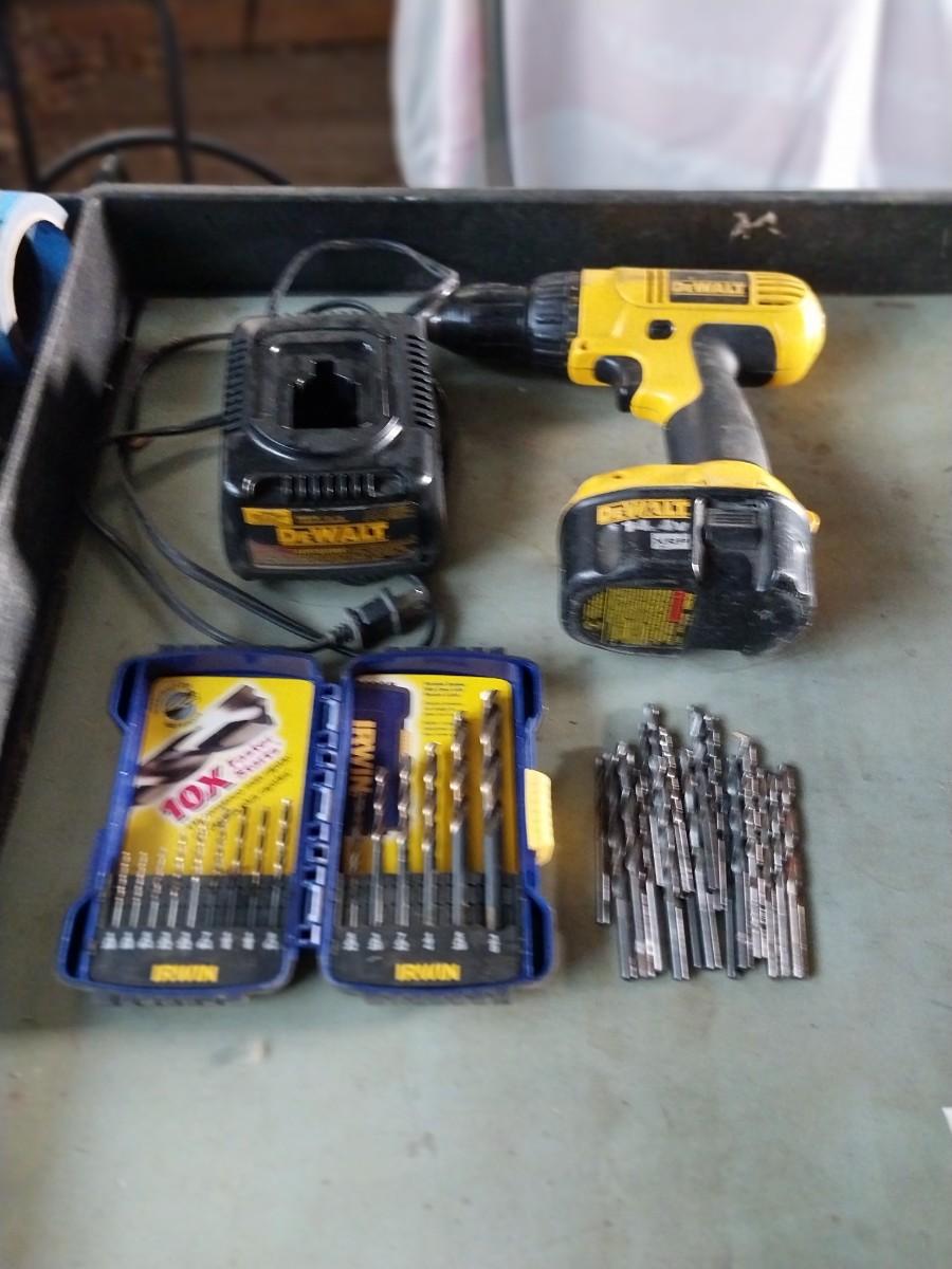 DEWALT CORDLESS DRILL WITH CHARGER AND DRILL BITS