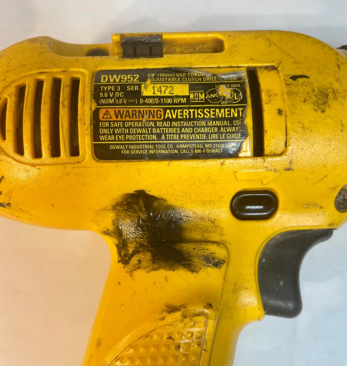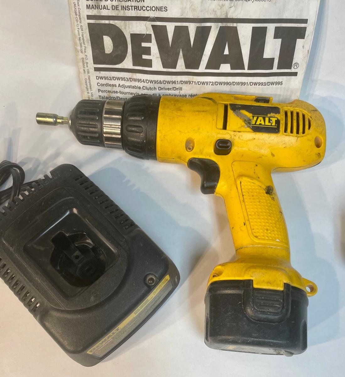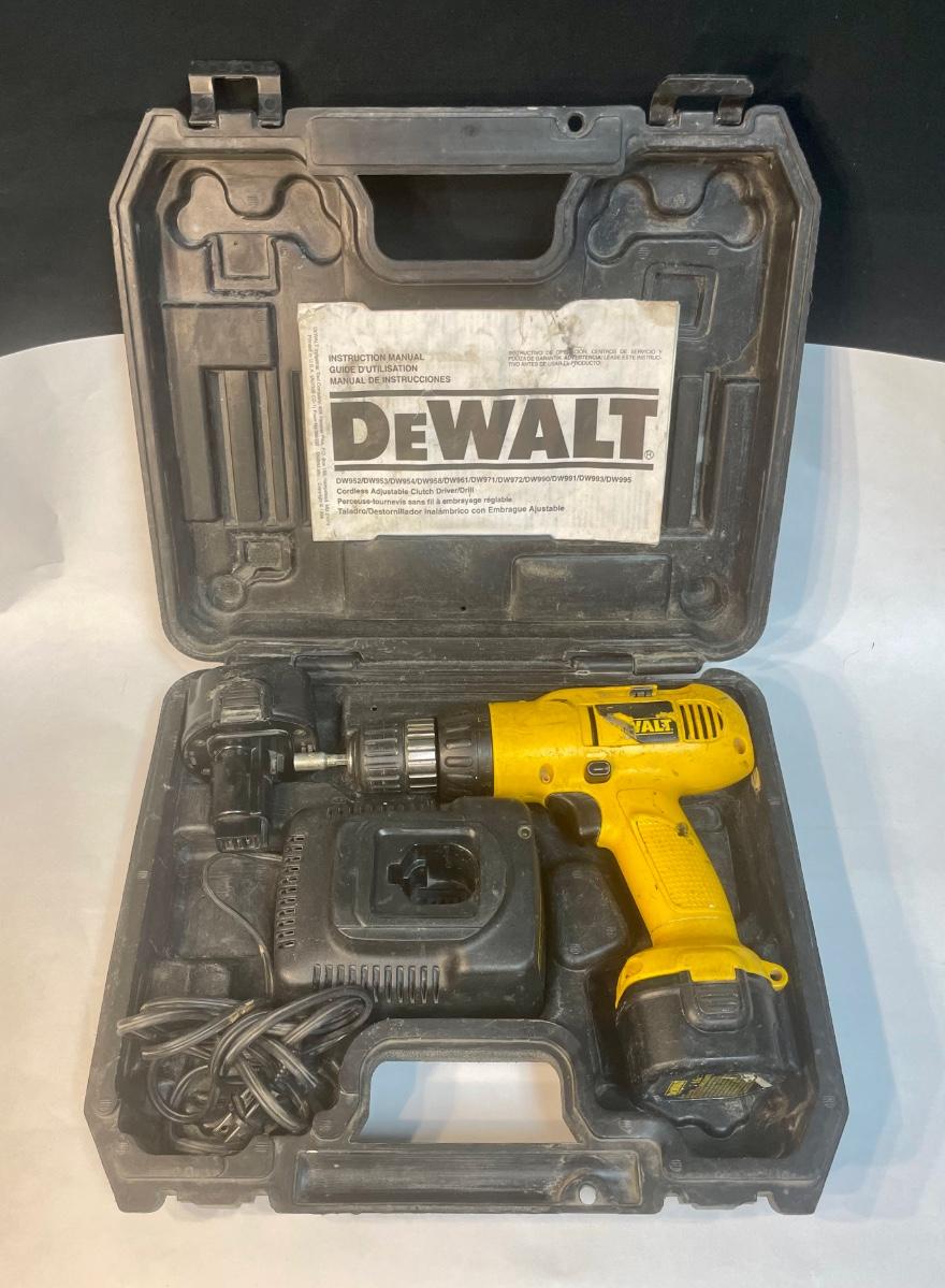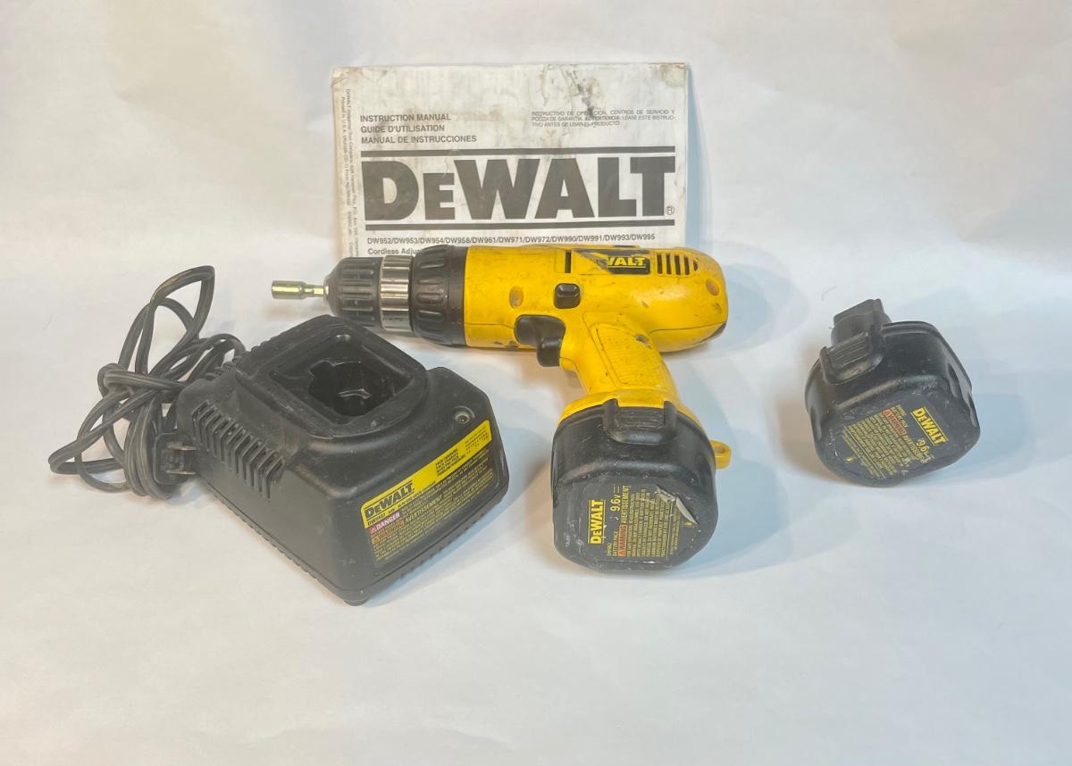 2 DW9062 Batteries, DW9107 Charger, and DW952 3/8" Cordless Drill. Tested, all work as expected. Comes with original instruction manual and hard plastic carry case.