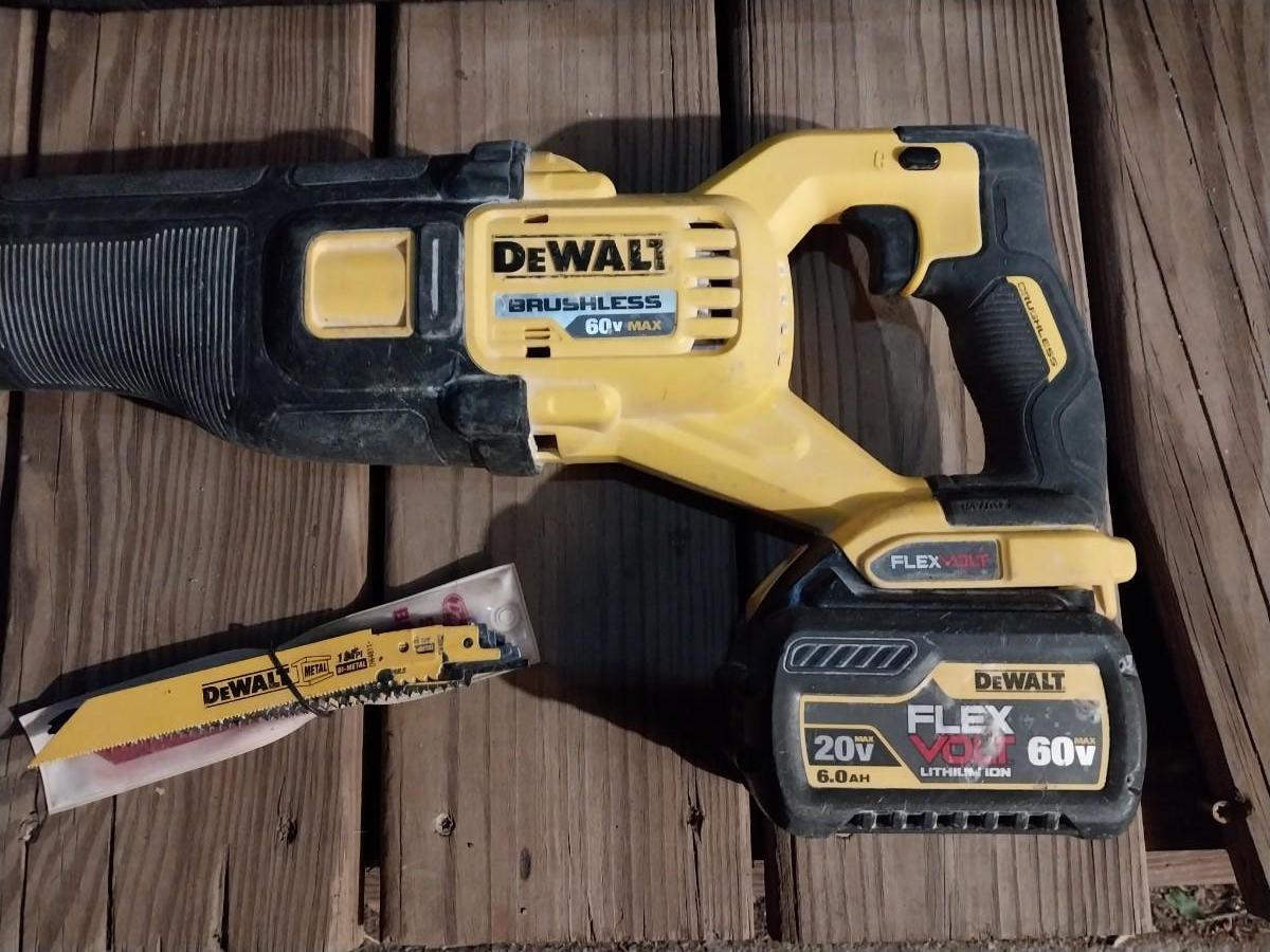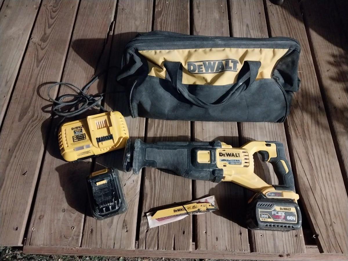 DEWALT CORDLESS SAWZALL WITH BATTERIES, CHARGER & BAG