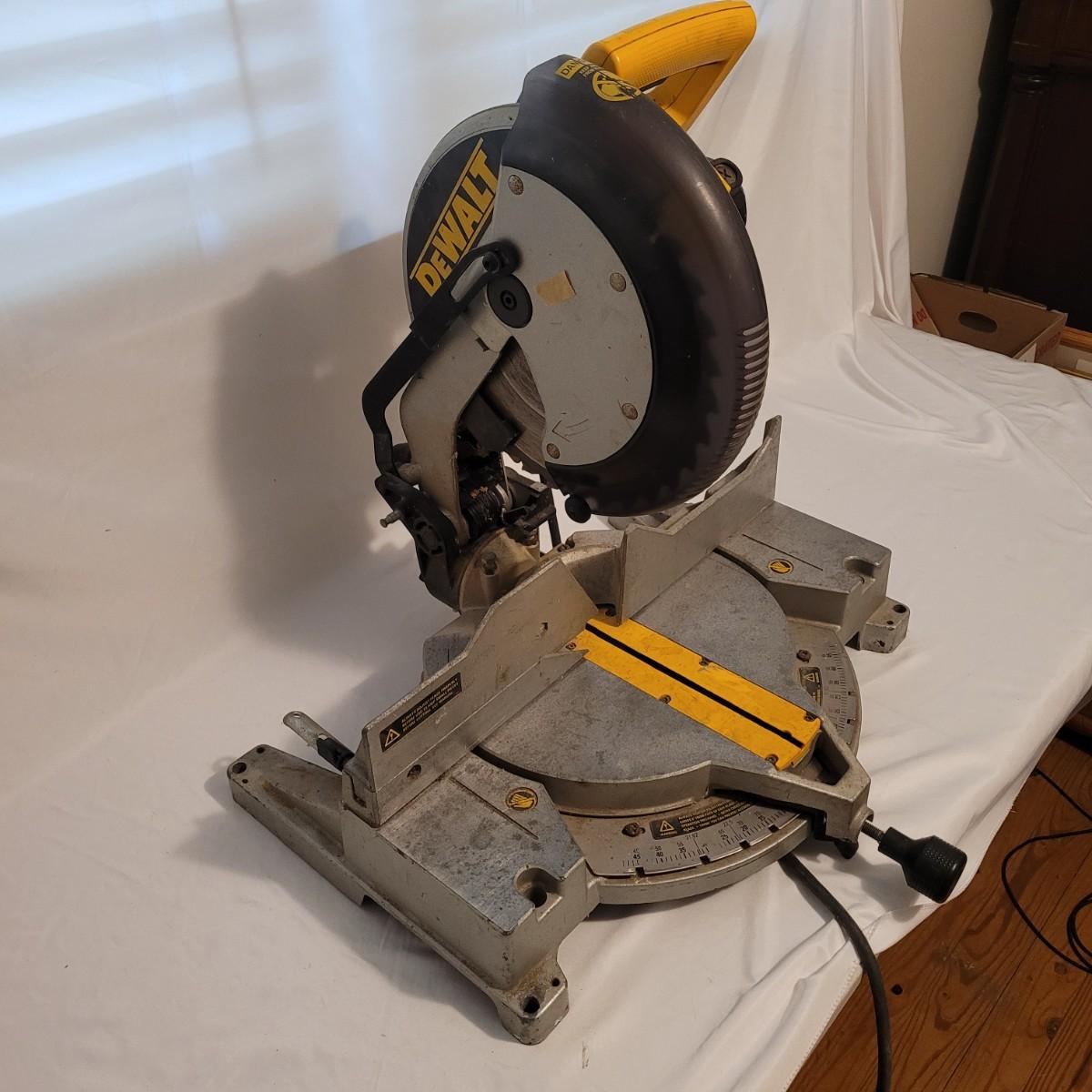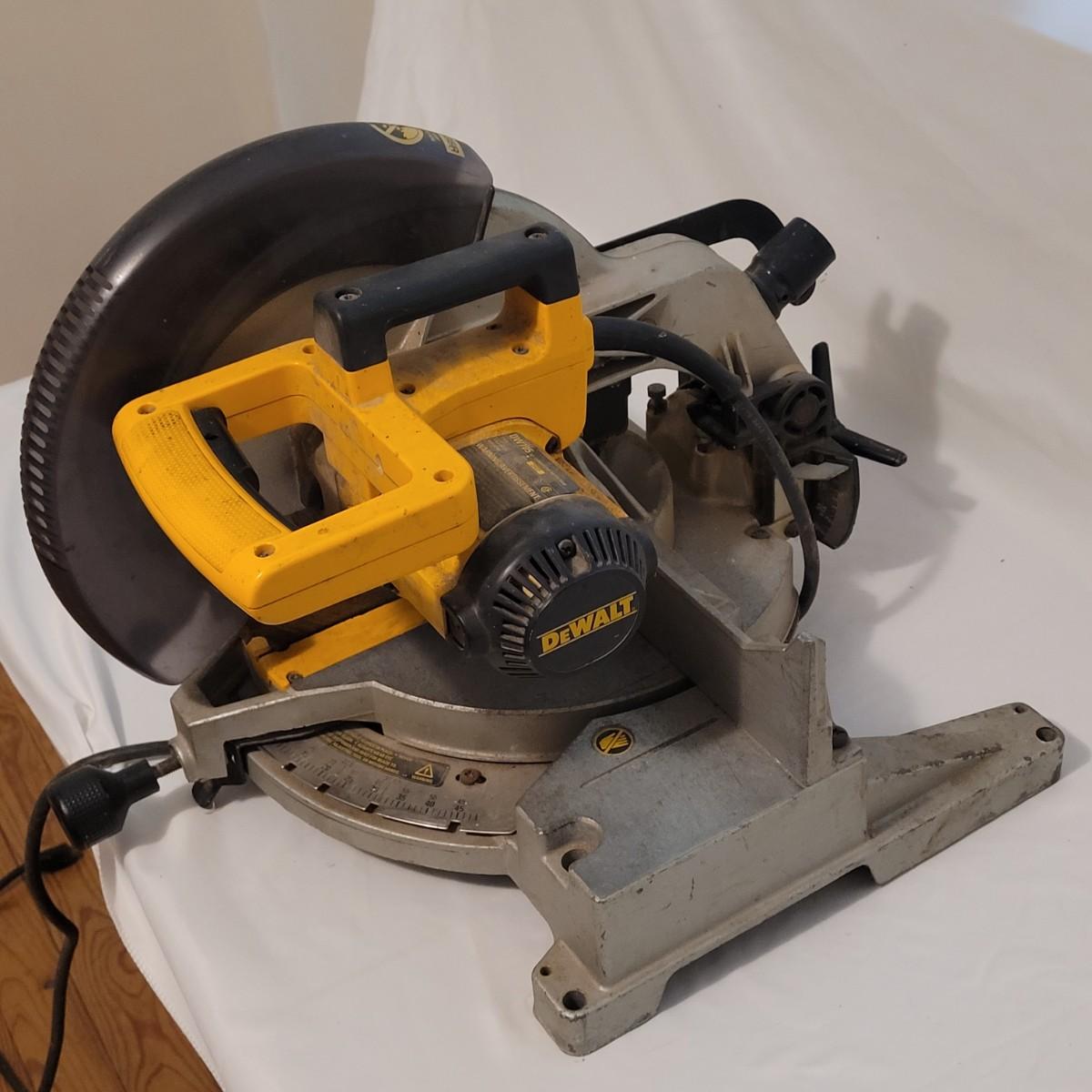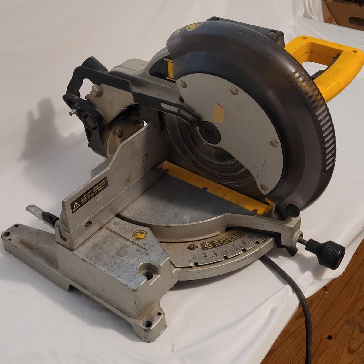 DeWalt brand 12" circular miter saw. Has a 15 Amp motor and operates at 4,000 RPM.